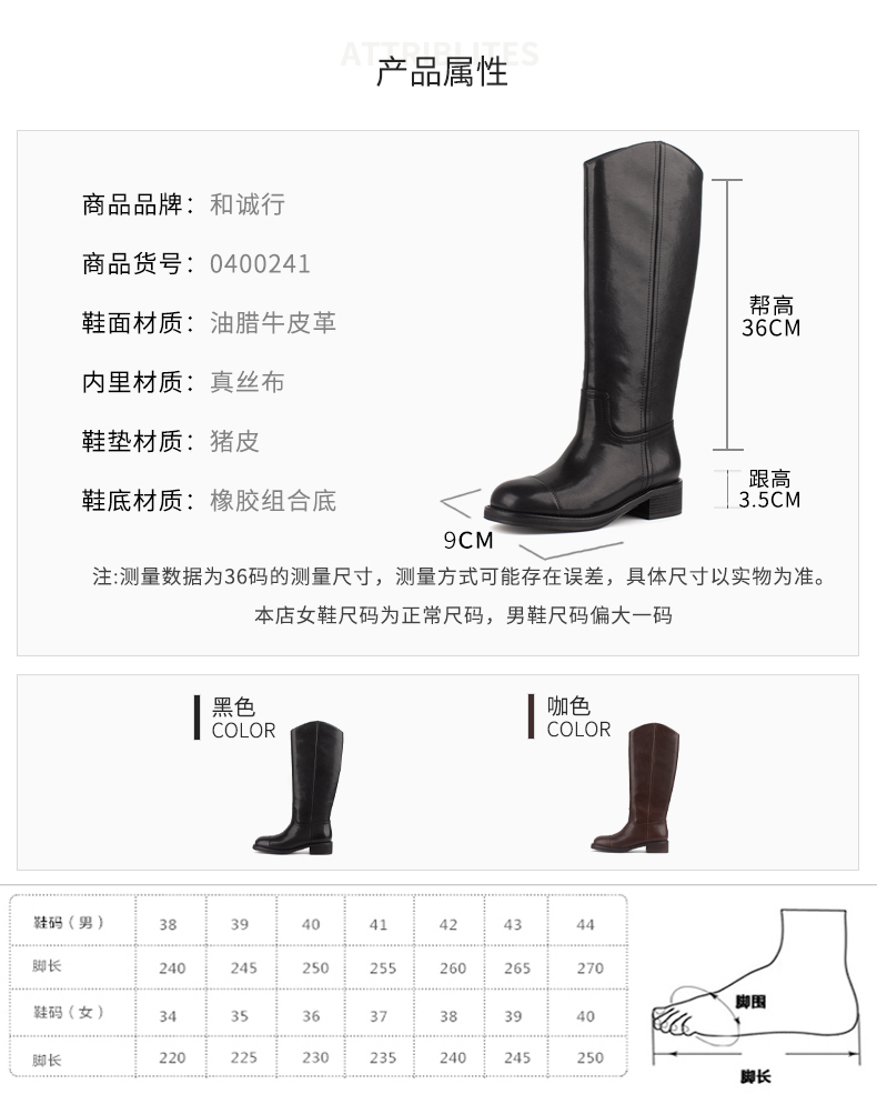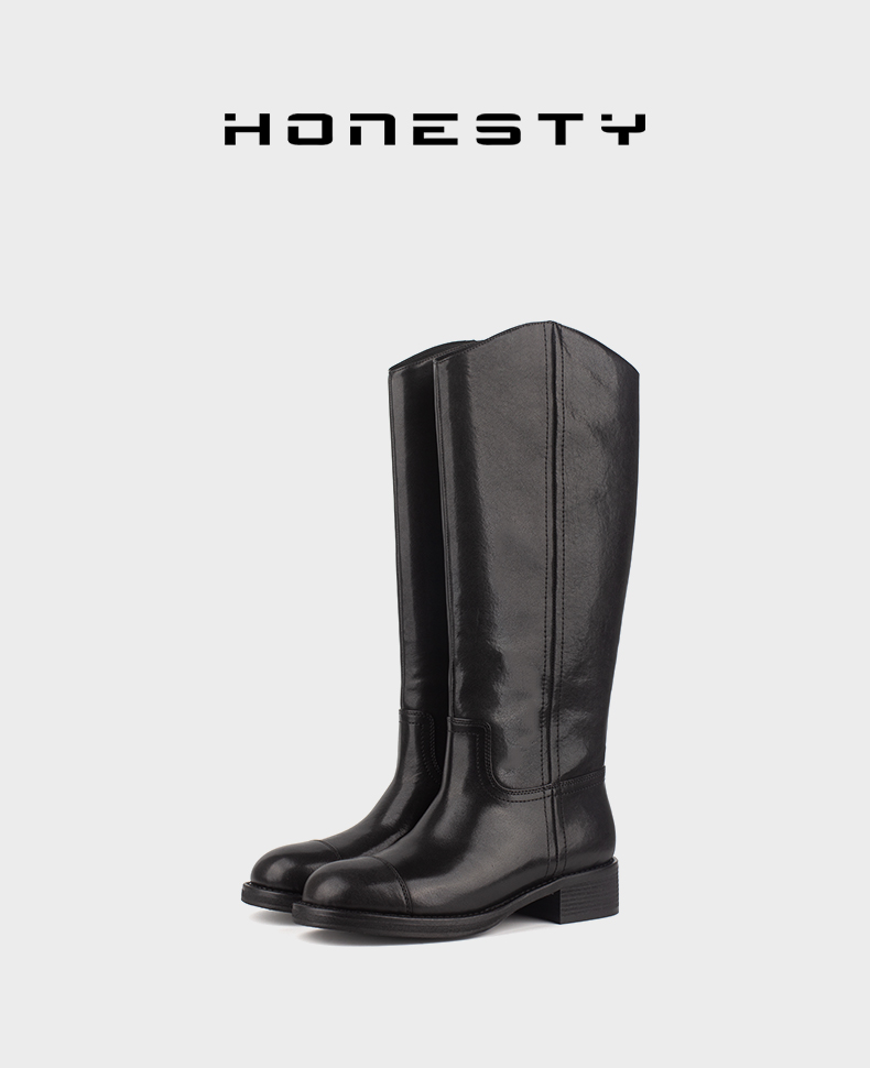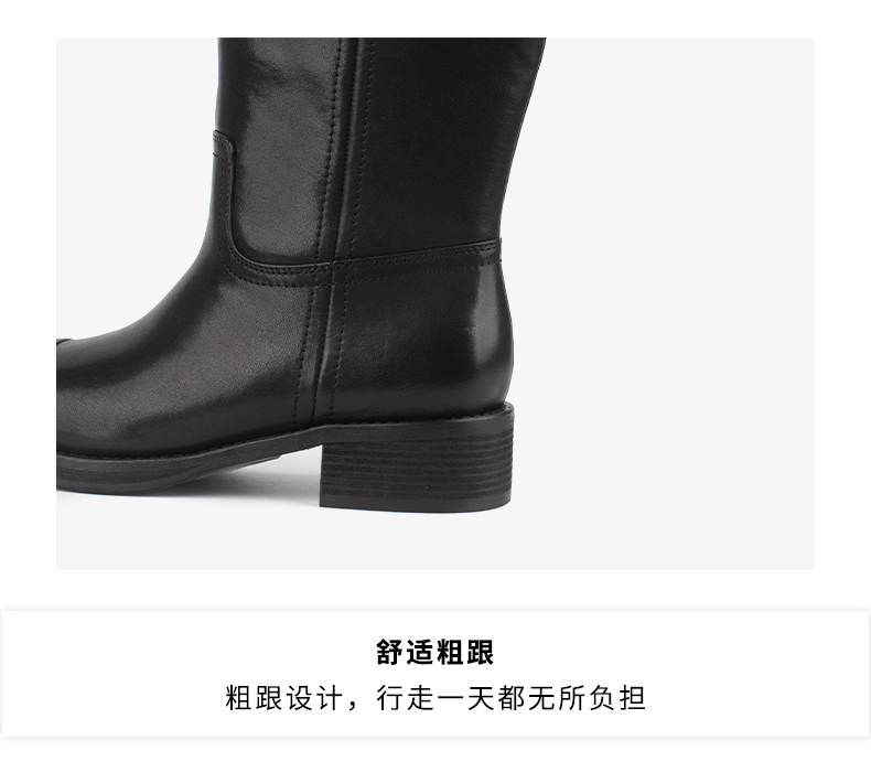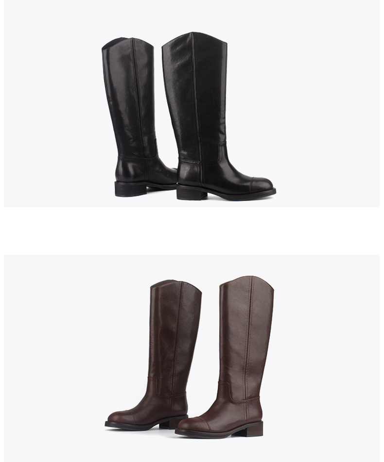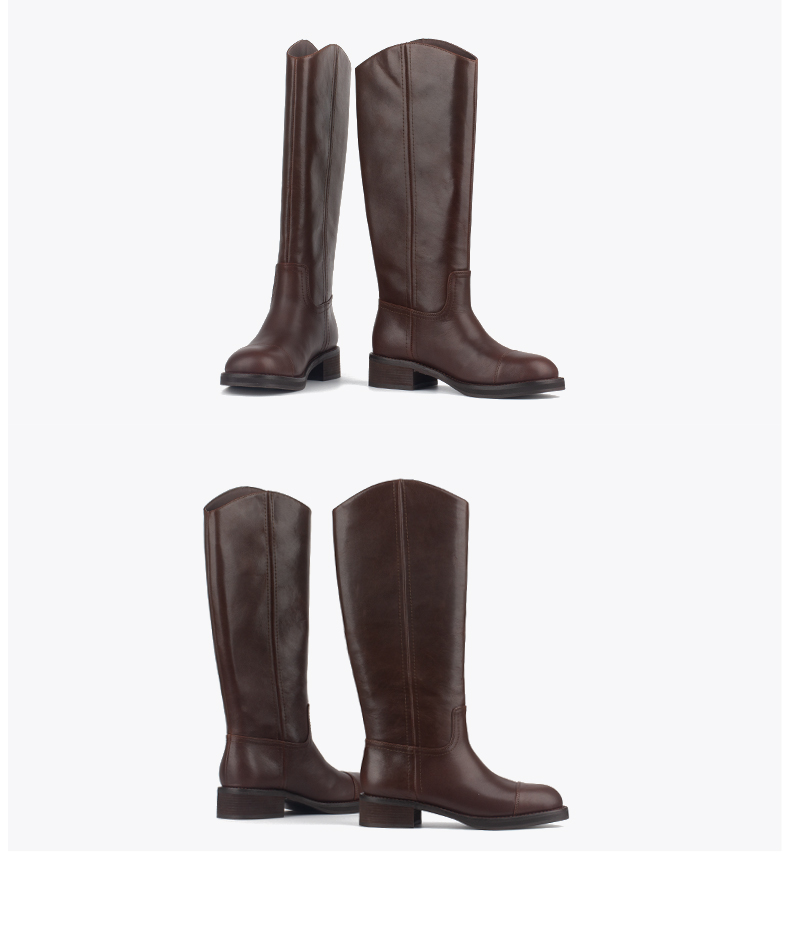 和诚行 2024秋冬新款时尚显瘦百搭长筒靴女复古真皮骑士靴0400241