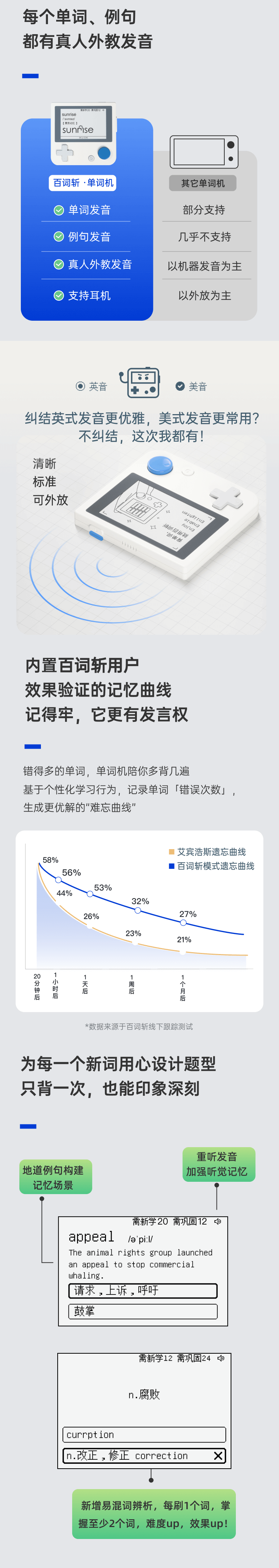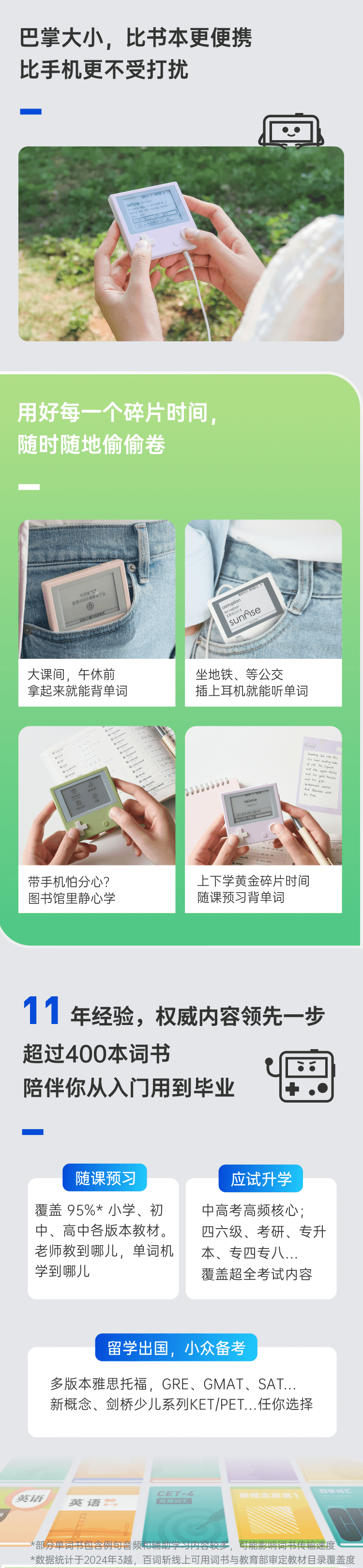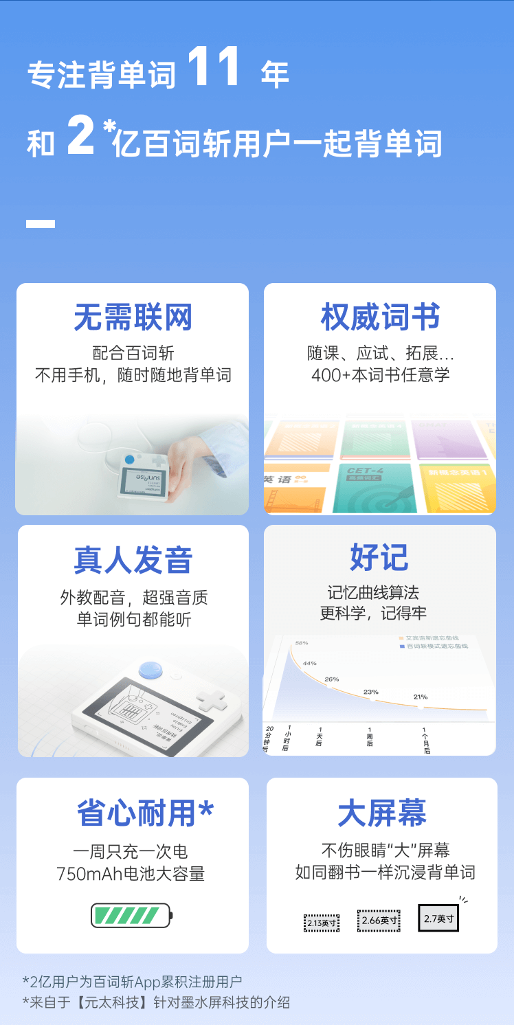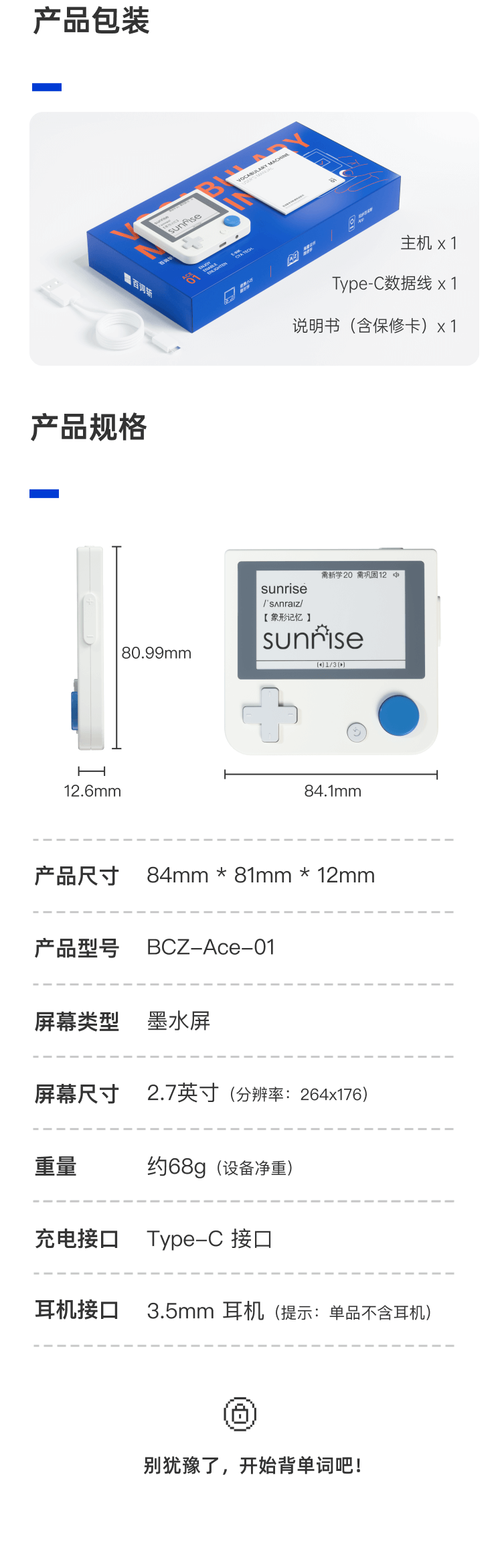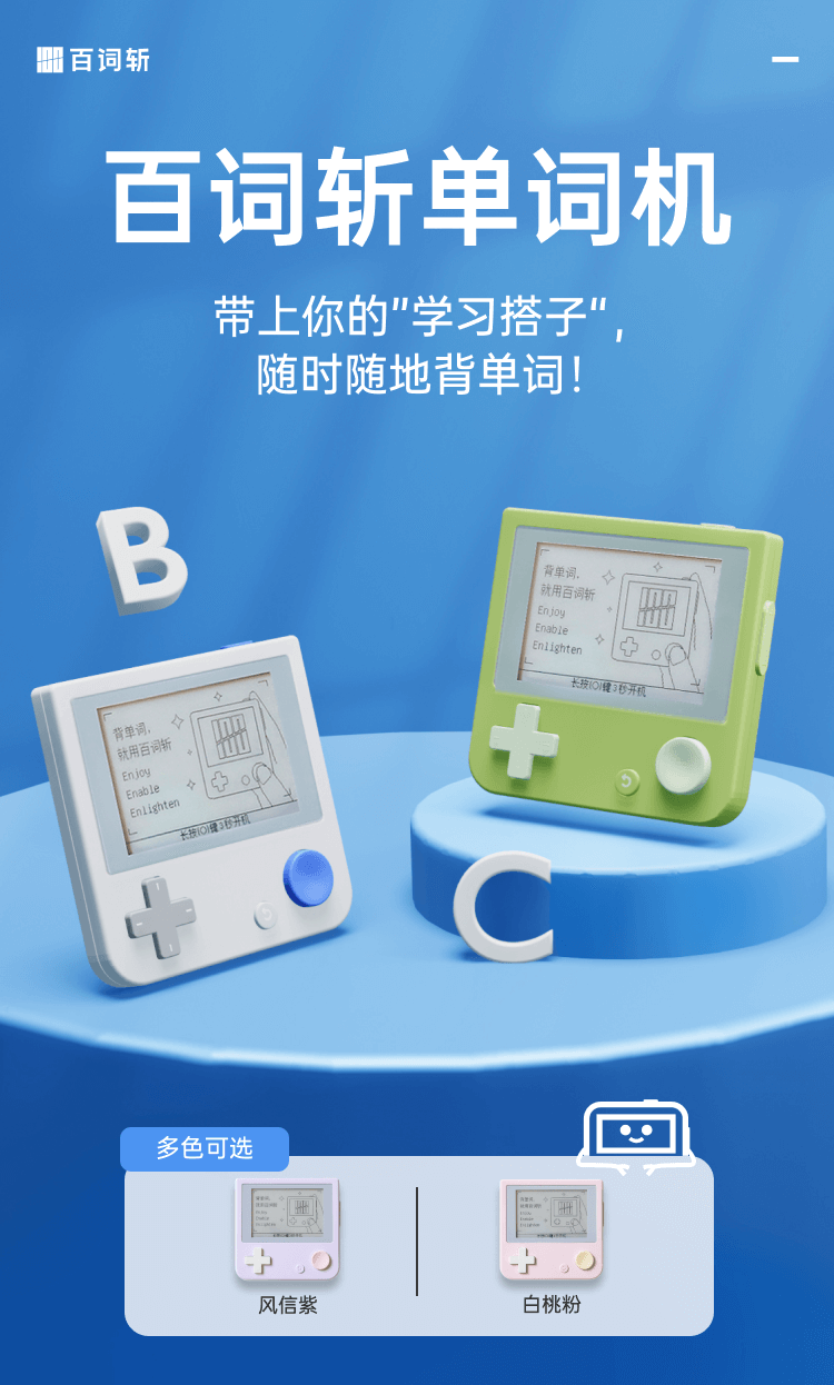 开学季【百词斩单词机】ACE01真人发音外教电子单词卡背单词神器墨水屏小初高英语便携英语学习机APP同步(周六,周天不发货)