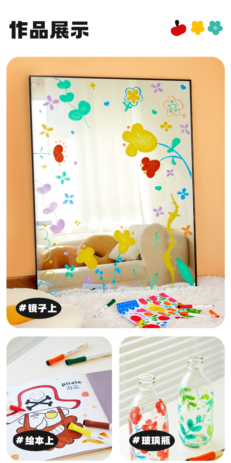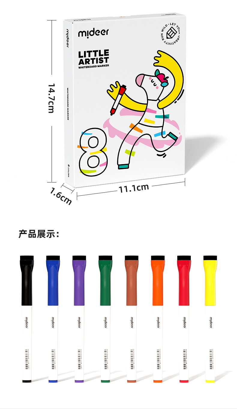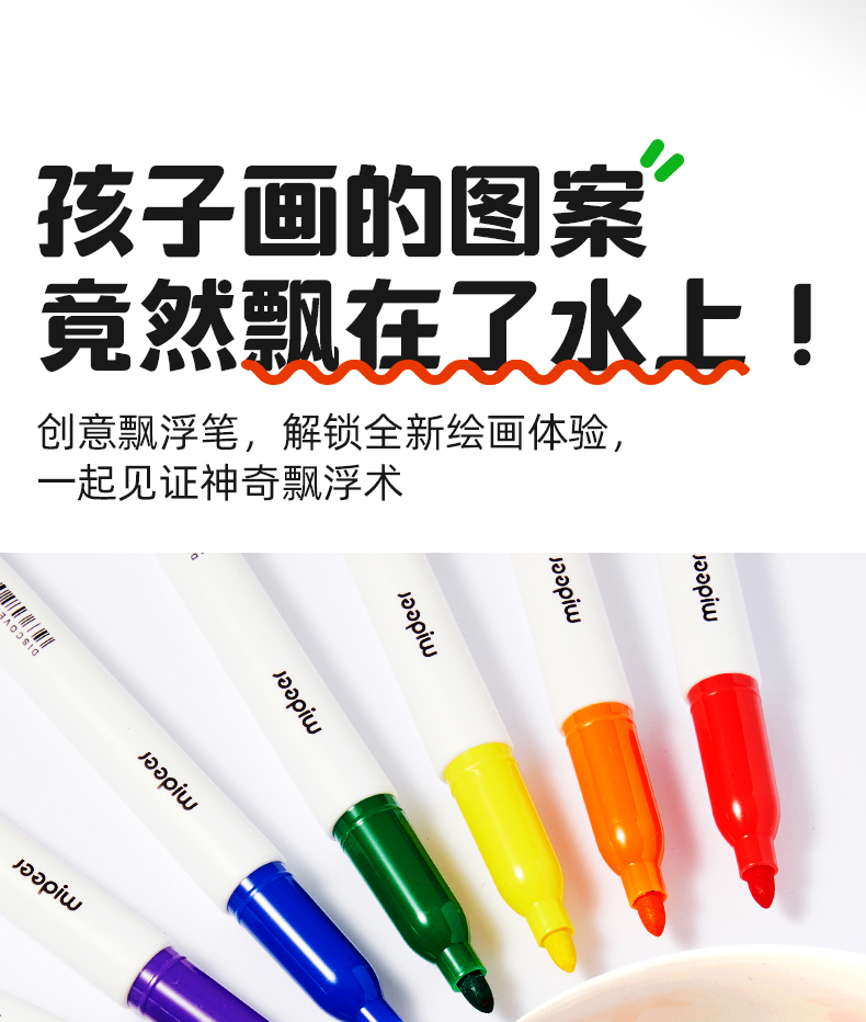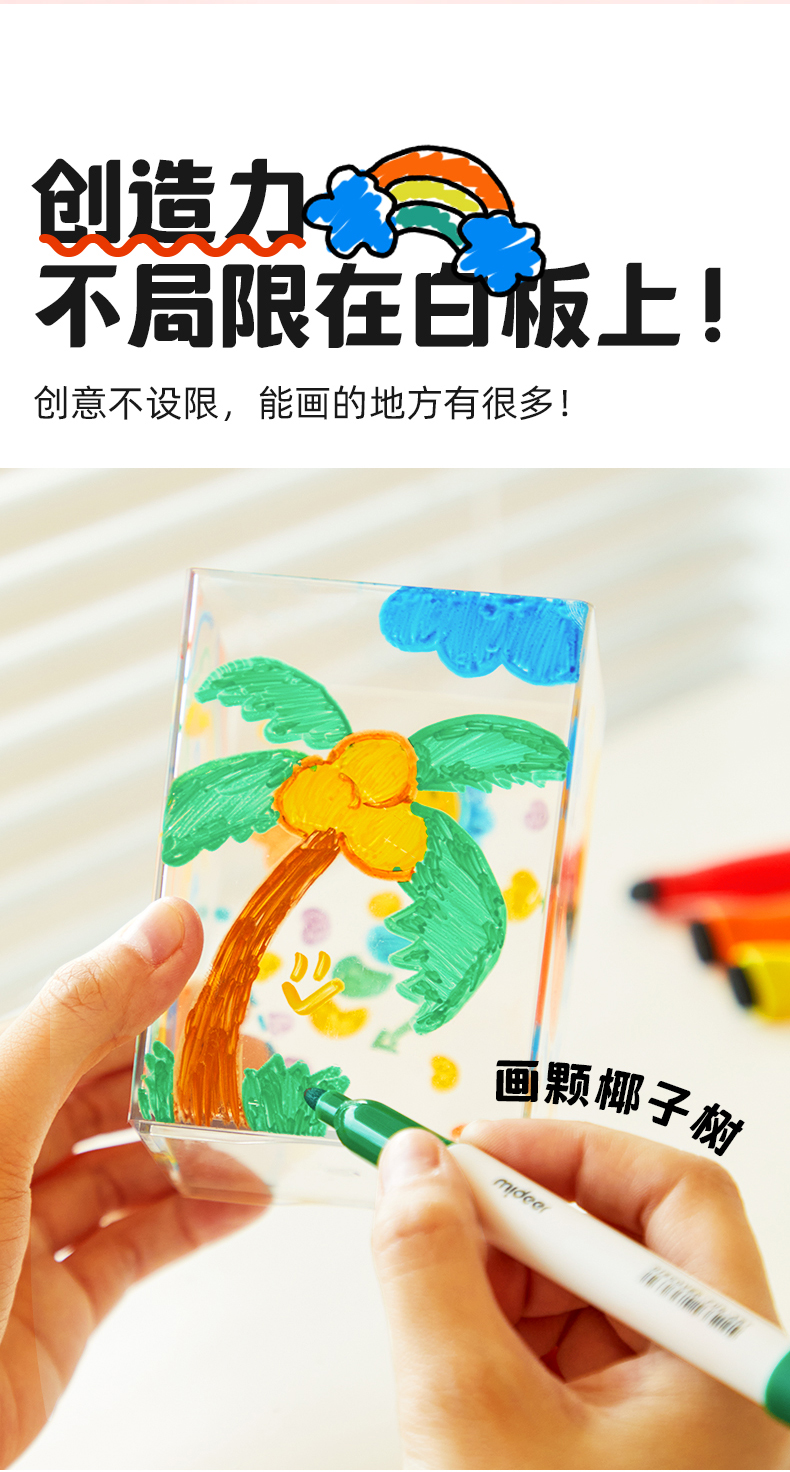 mideer弥鹿儿童创想白板笔水性可擦笔儿童写字板黑板画画板笔丝滑大容量彩色水彩笔漂浮笔8色多色儿童记号笔