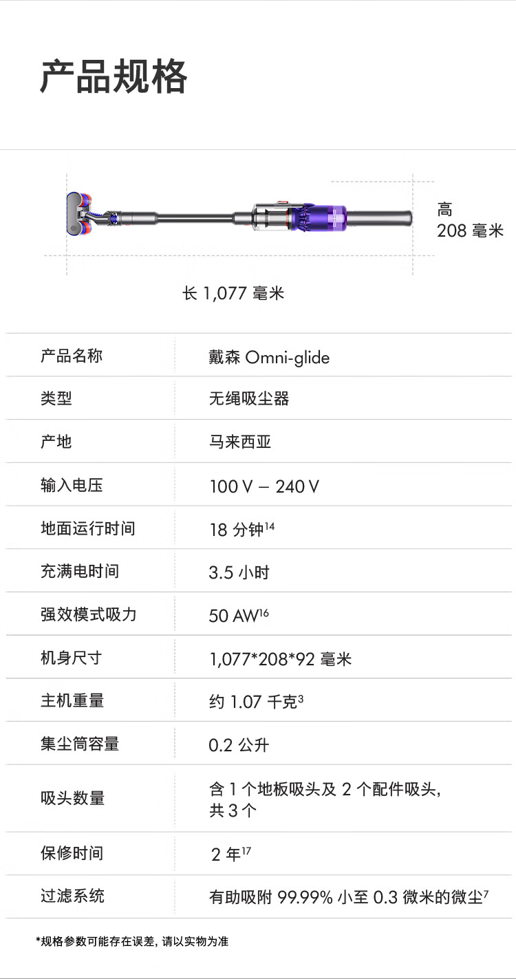 【直发】戴森Dyson Omni-Glide 无绳吸尘器(紫色)双杆