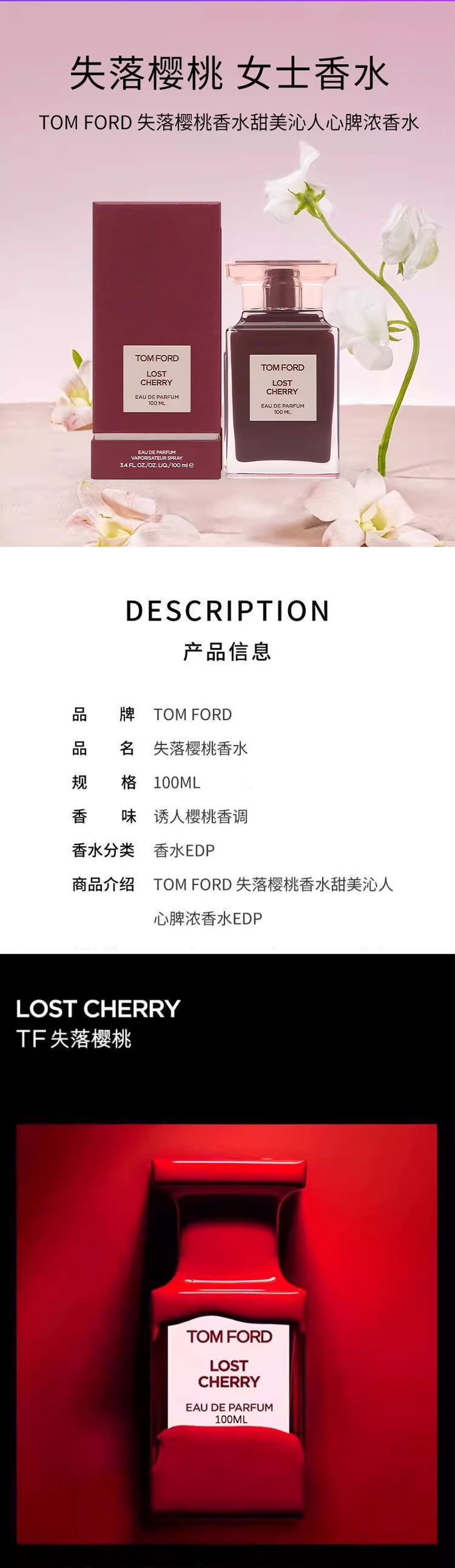 【送礼袋】TF/汤姆福特 失落樱桃香水100ml 浓香 +TF细白管口红3.3g 正装 香港直邮