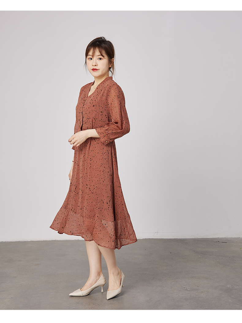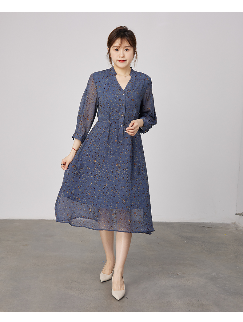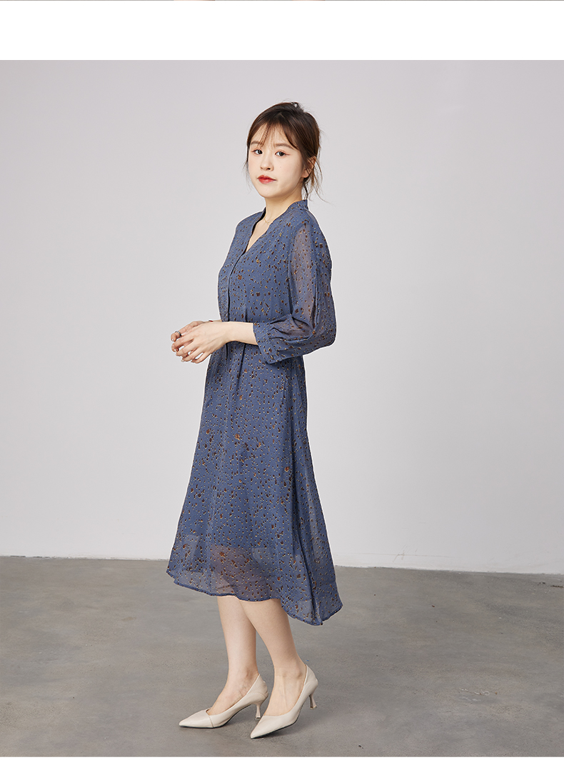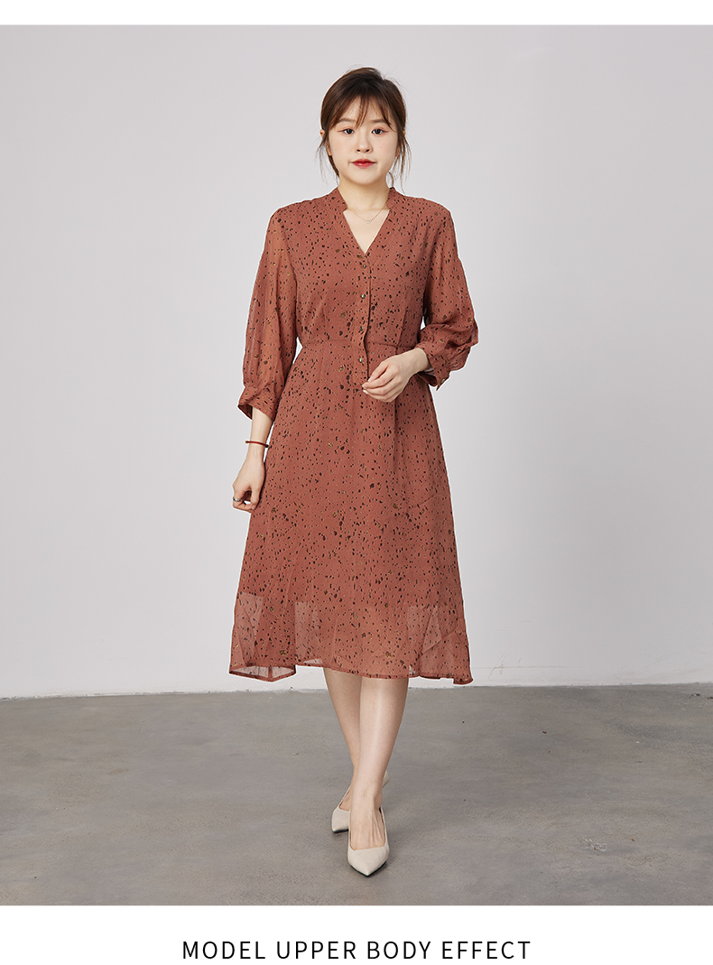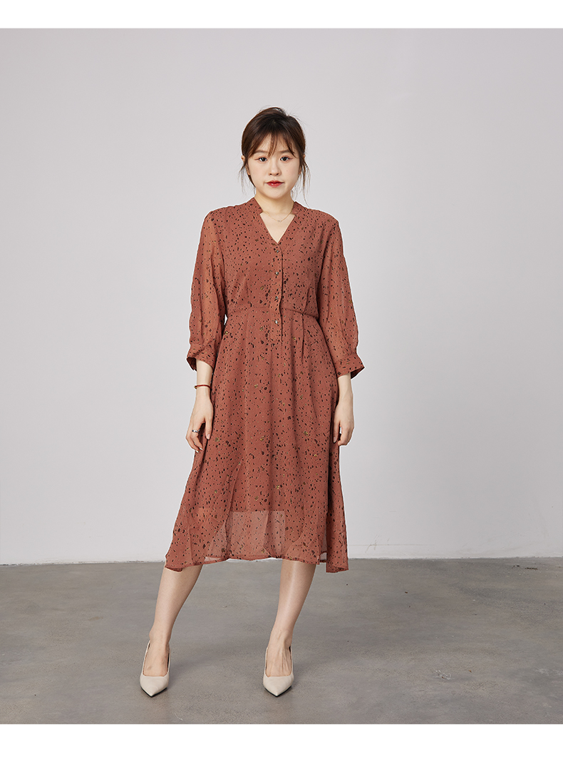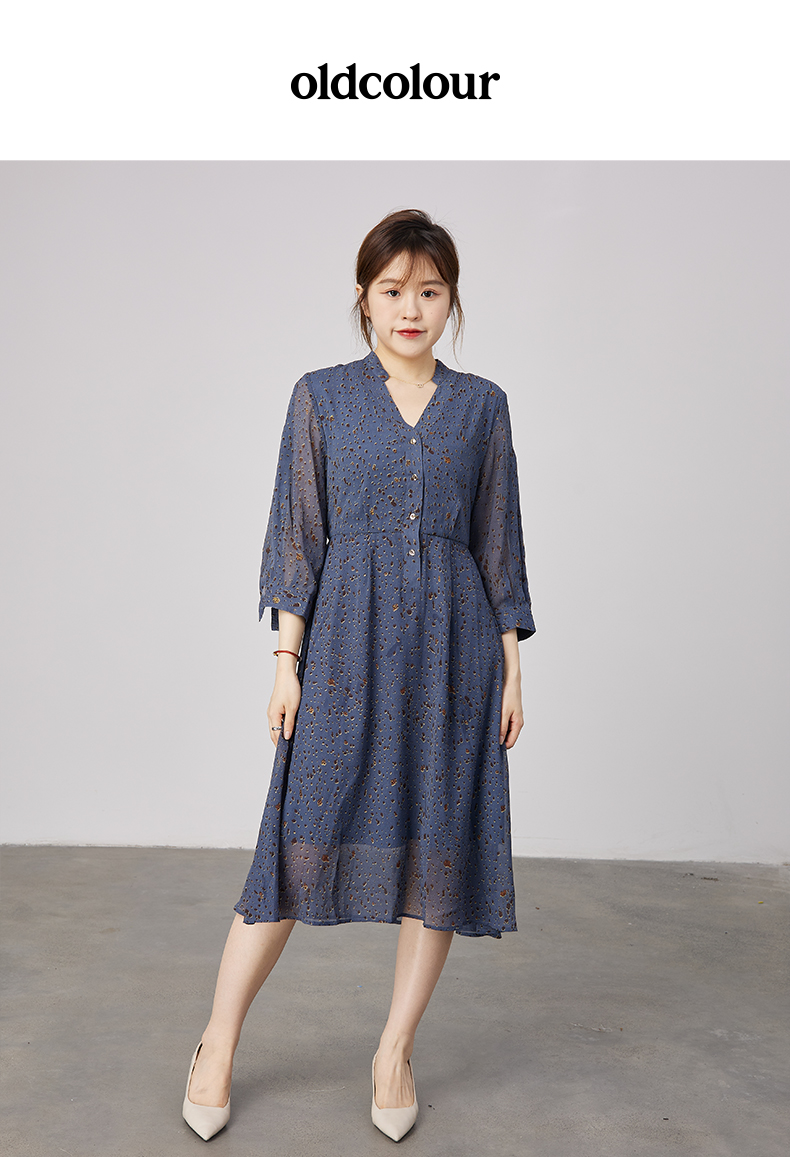 oldcolour2021秋季商场同款V领高腰显瘦大方碎花连衣裙N31103110