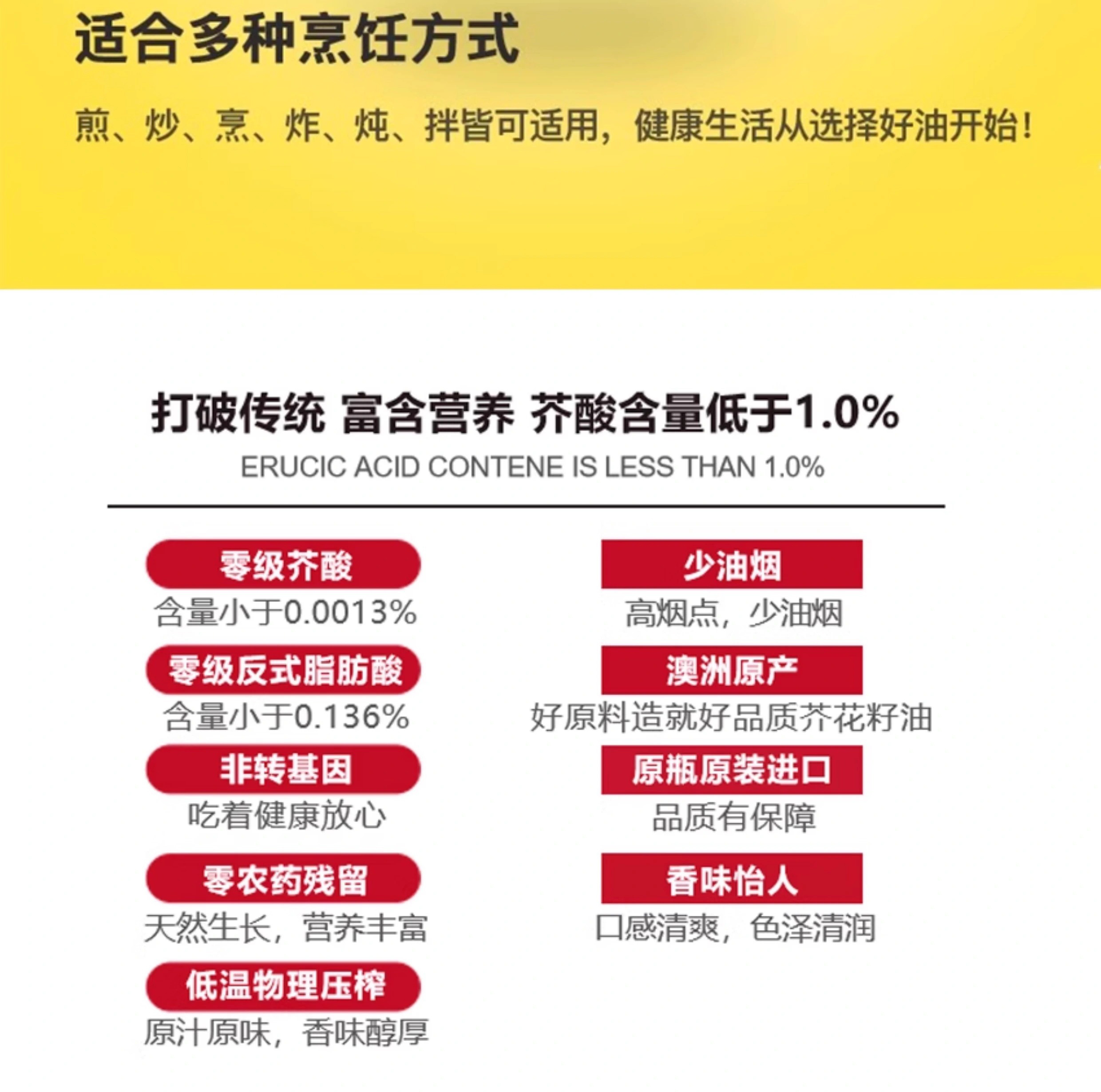 【特惠送无糖杂粮】澳洲进口芥花籽油2L(赠初萃无糖快熟十谷粥米700g 保质期至25.12.08)
