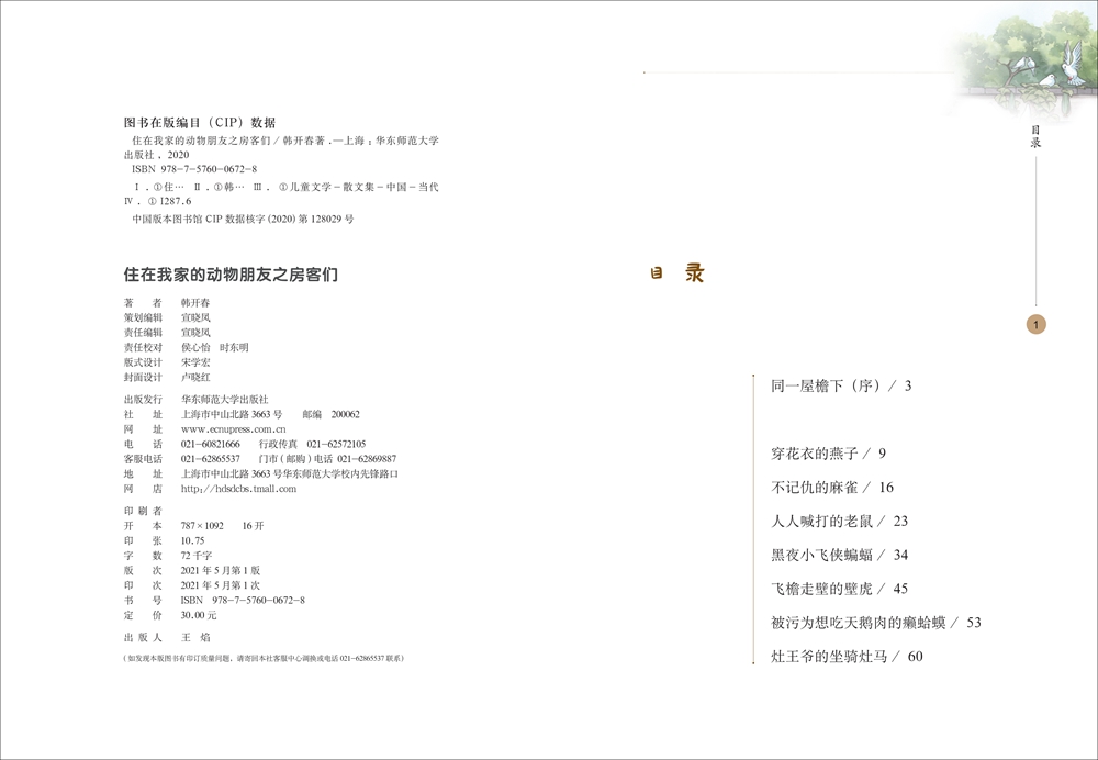 (仓发) 住在我家的动物朋友之房客们/华东师范大学出版社/韩开春/9787576006728