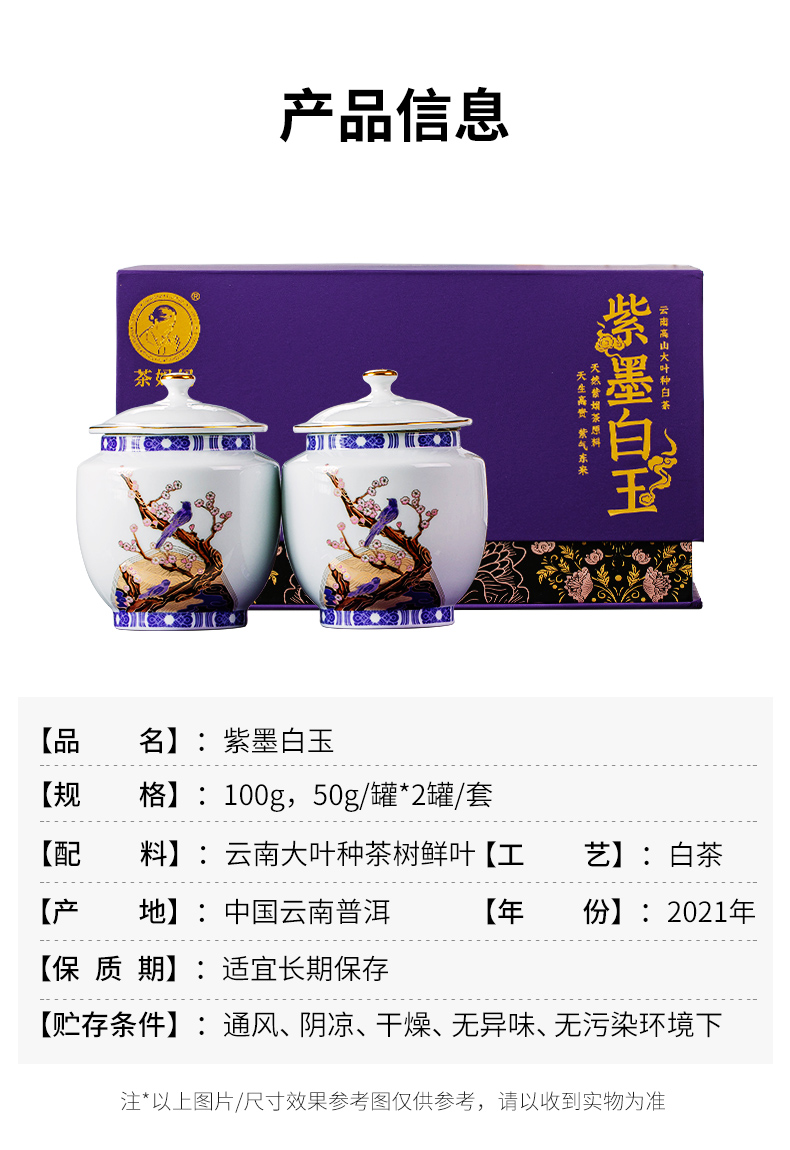 澜沧古茶2021年茶妈妈紫墨白玉白茶紫鹃茶云南茶叶礼盒罐装100g
