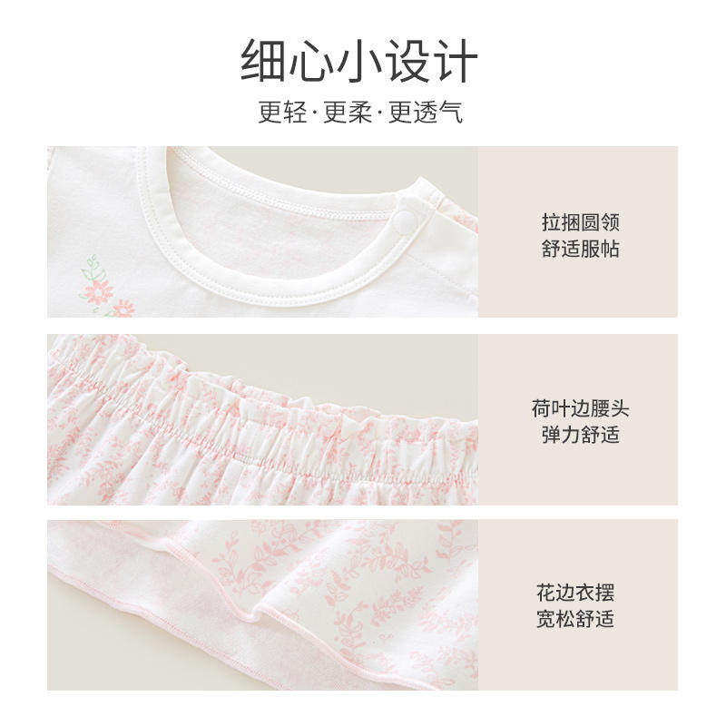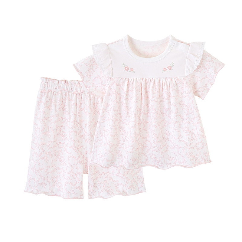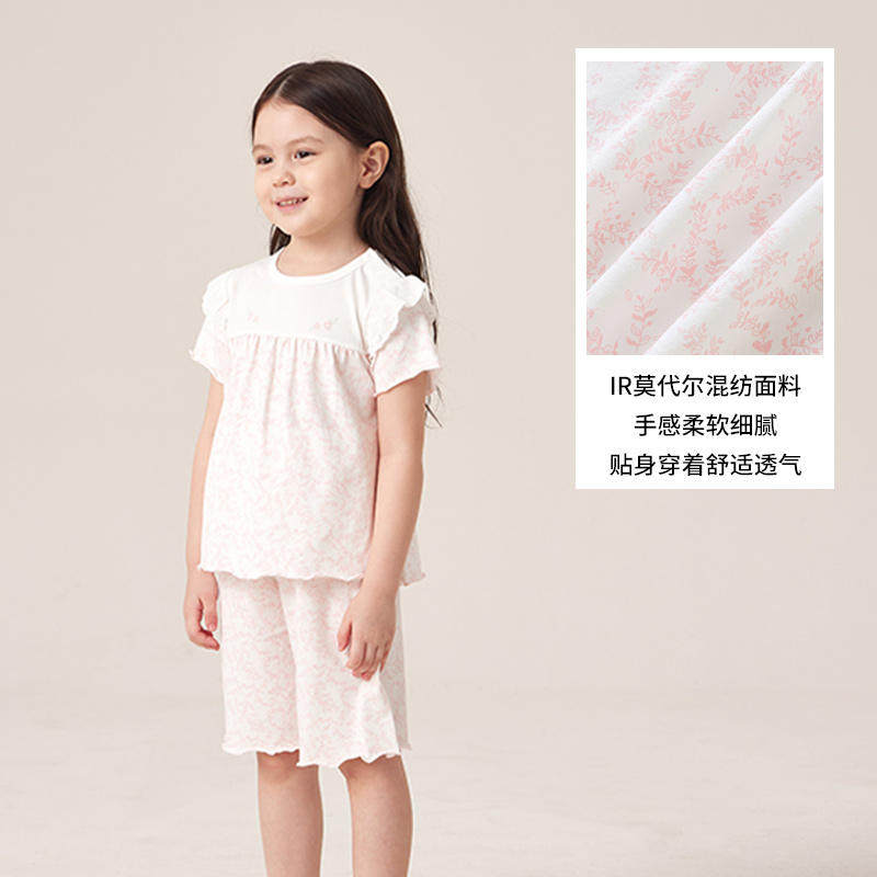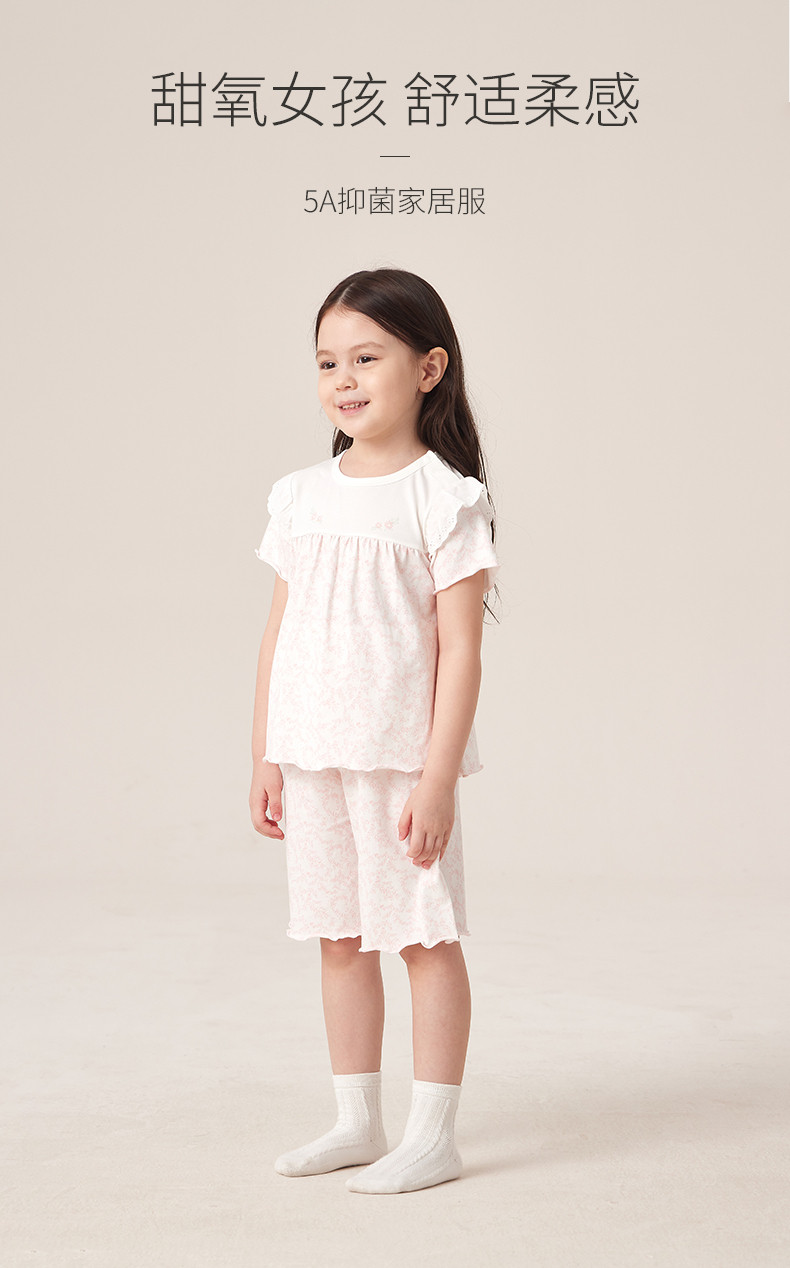 英氏儿童短袖家居服圆领套装女童睡衣 春夏季新款YZJCJ2P015A