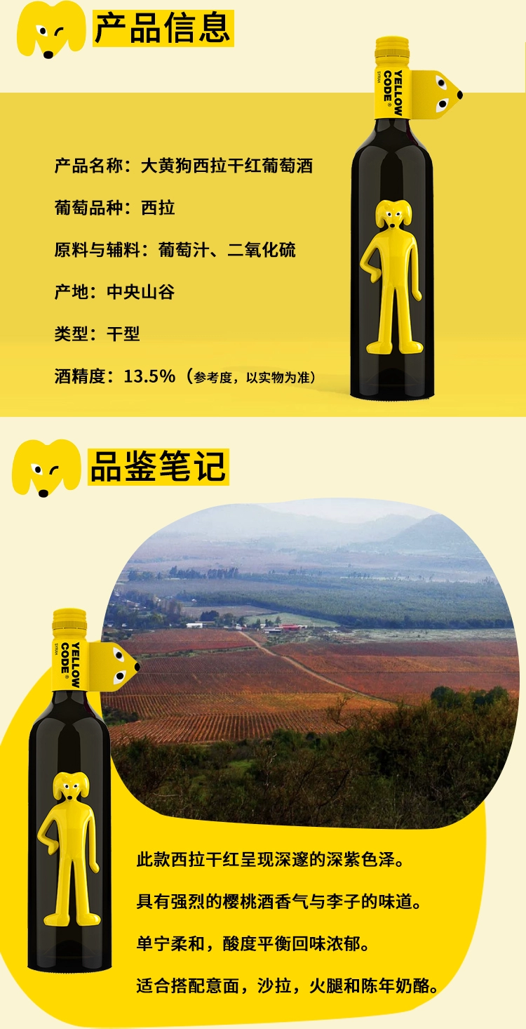 智利大黄狗西拉干红葡萄酒