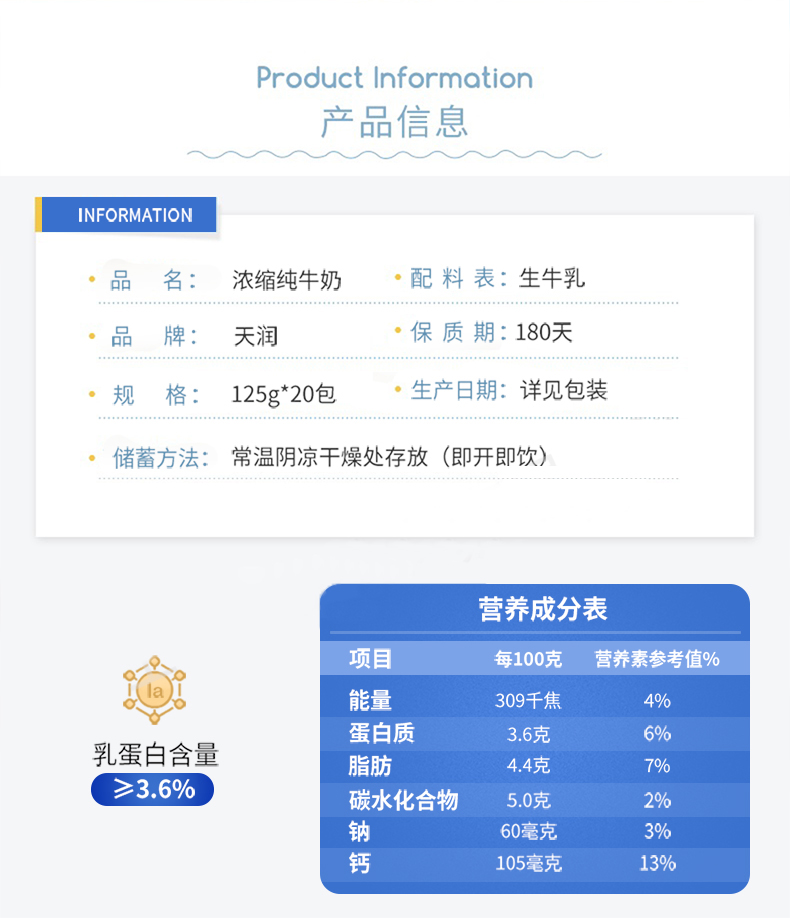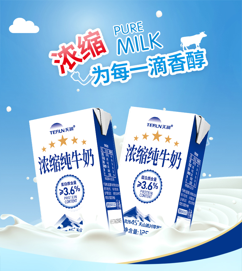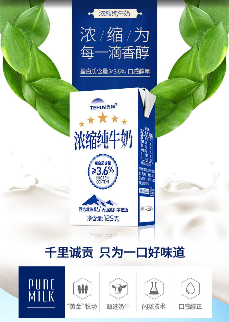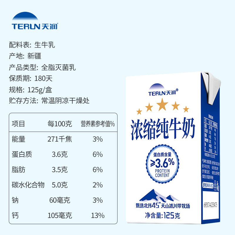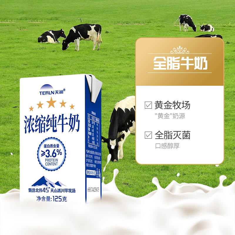 天润浓缩纯牛奶(125g*20盒/箱 蛋白含量≥3.6)生产日期: 3月23日