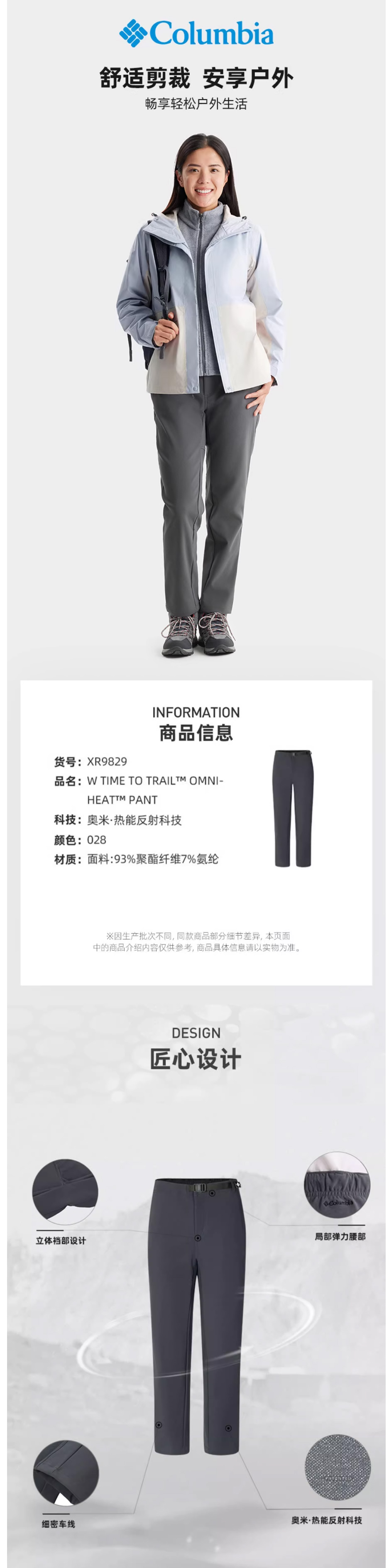 哥伦比亚户外女子银点热能保暖旅行运动徒步长裤XR9829010