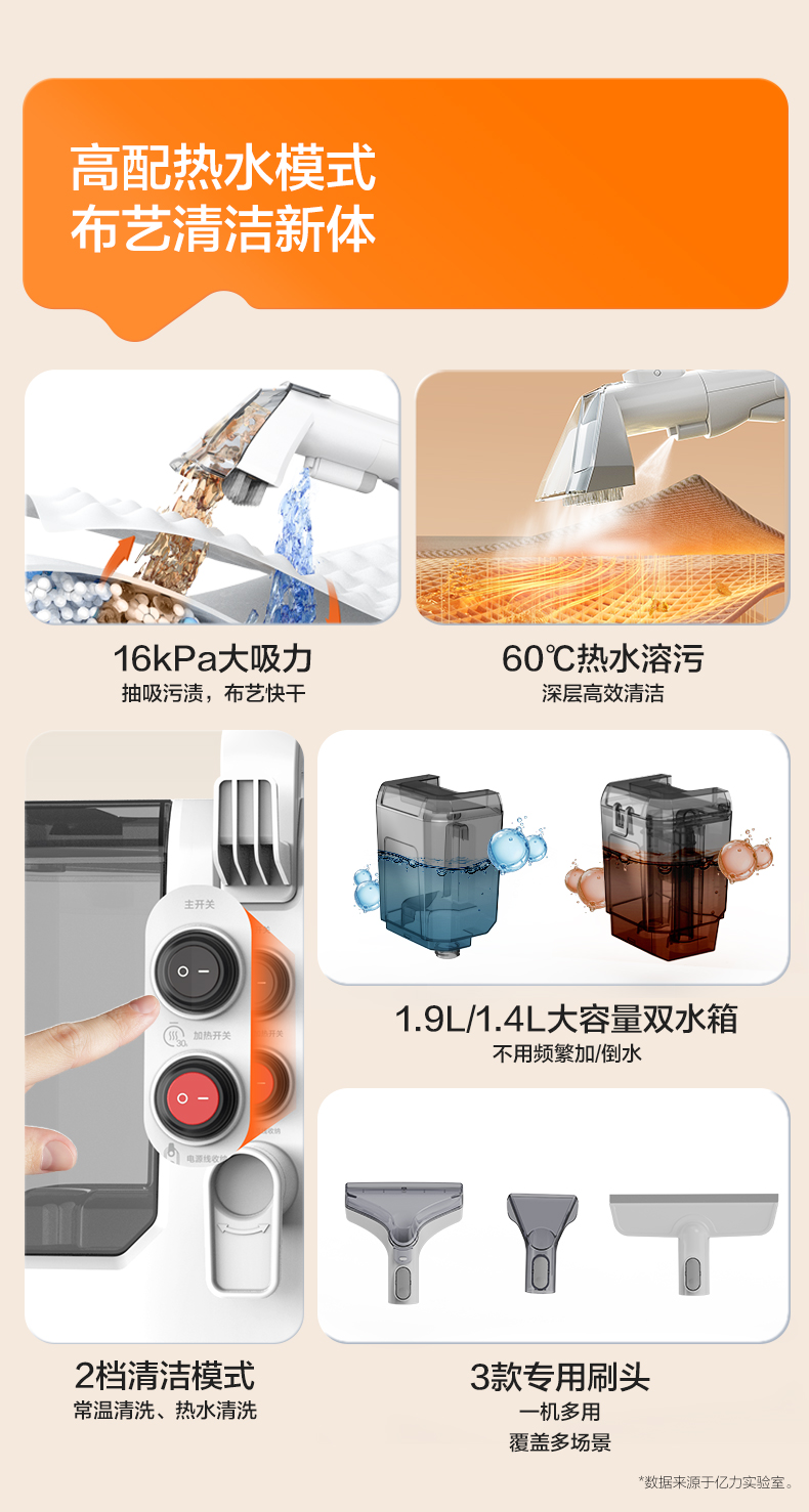 亿力布艺沙发清洗机热水款喷抽吸一体家用多功能地毯窗帘清洁机