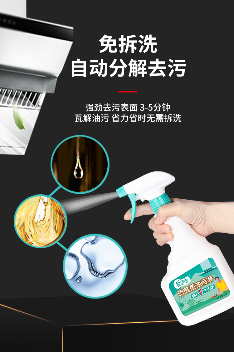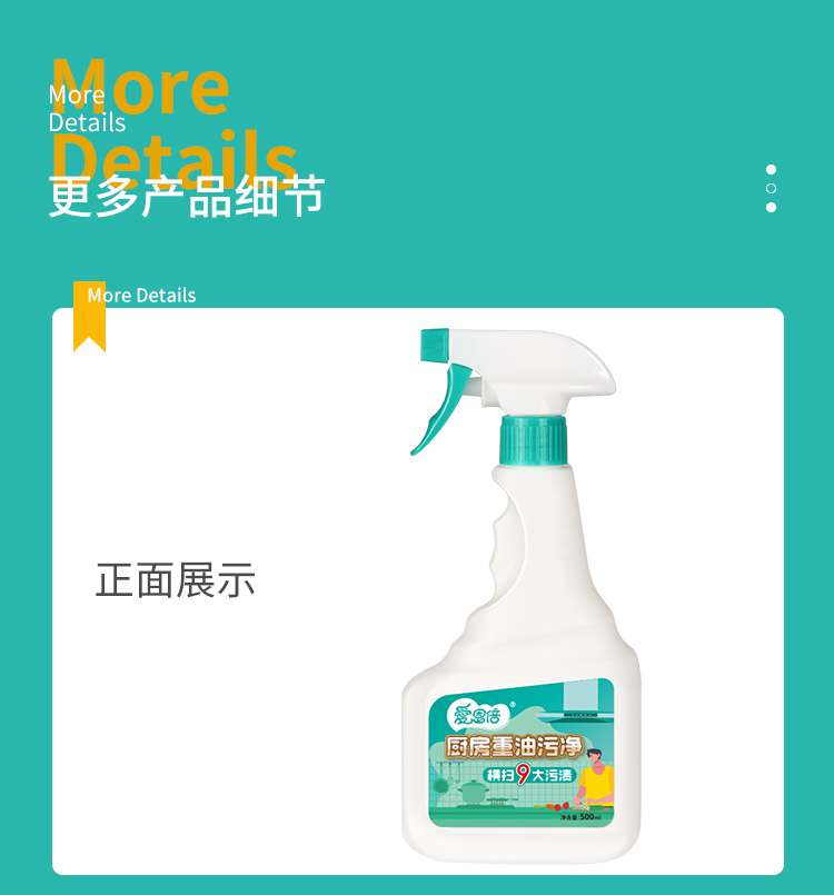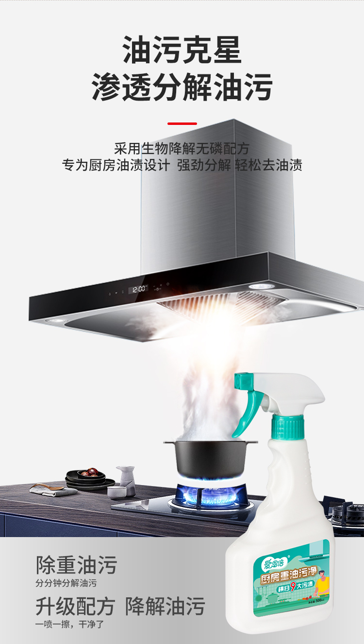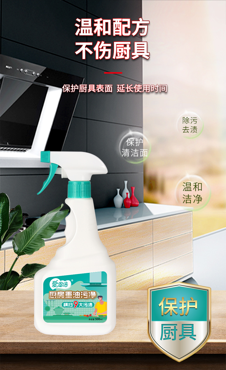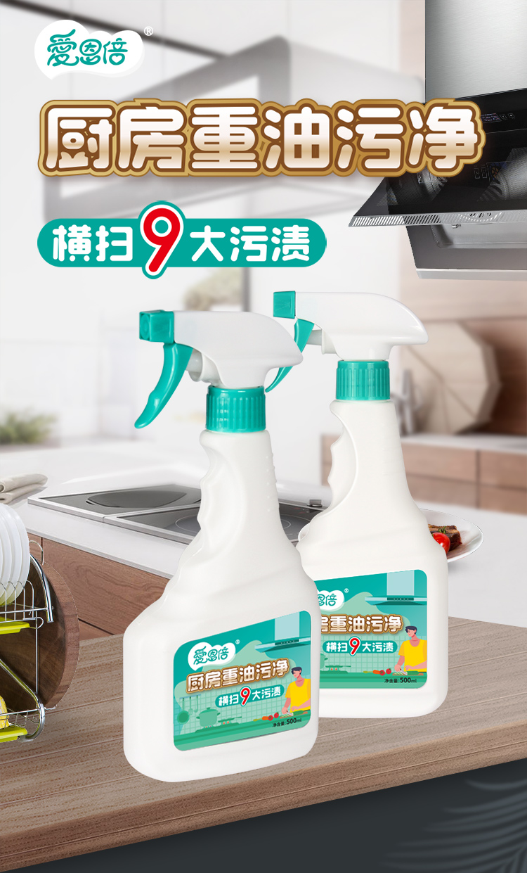 爱恩倍 厨房清洁神器重油污油渍油烟除垢清洁剂500ml*3瓶