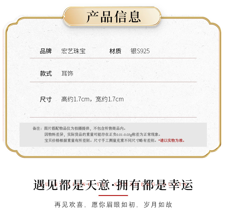 【宏艺珠宝】事事顺遂·银s925耳饰HS