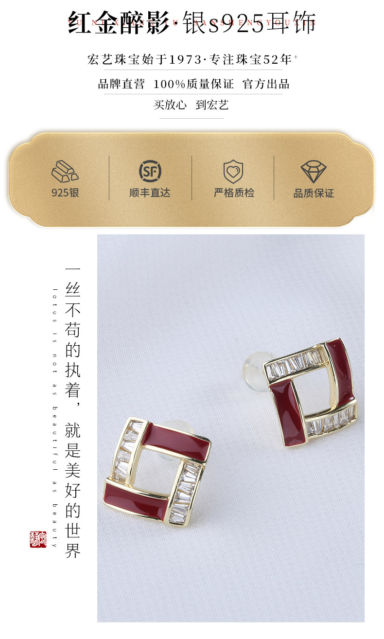 【宏艺珠宝】红金醉影·银s925耳饰