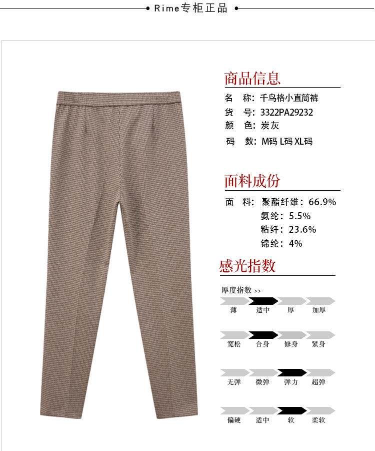 千鸟格小直筒裤休闲裤29232
