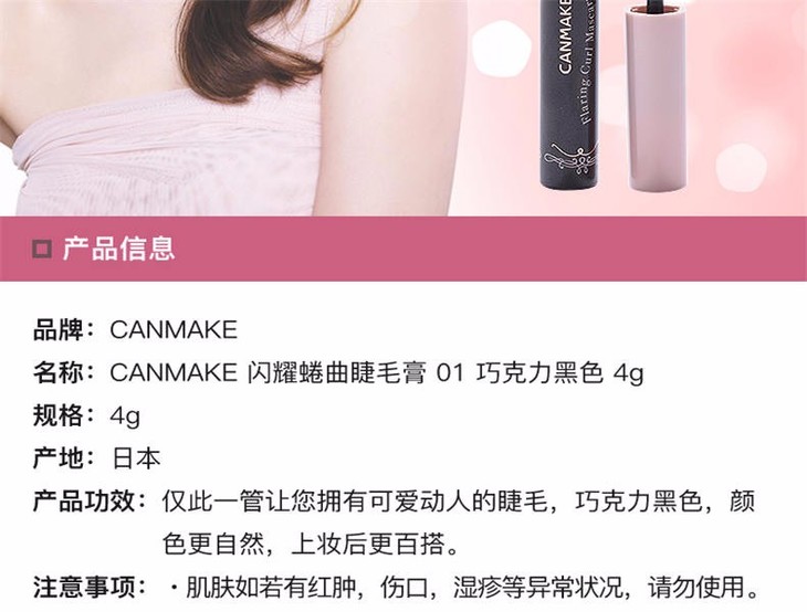 【保税仓】CANMAKE/井田 纤长卷翘根根分明睫毛膏 #01巧克力黑色 4g