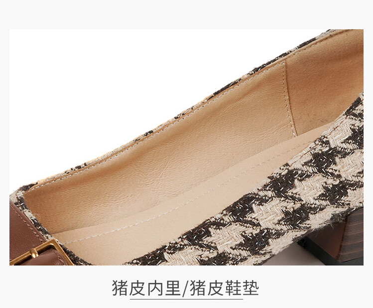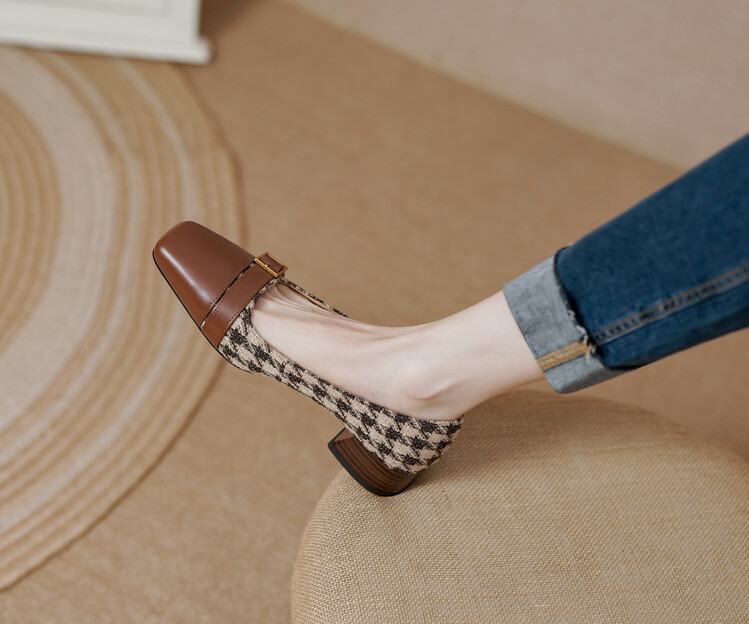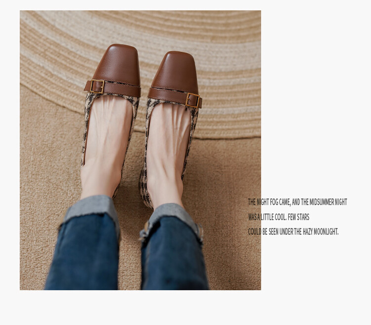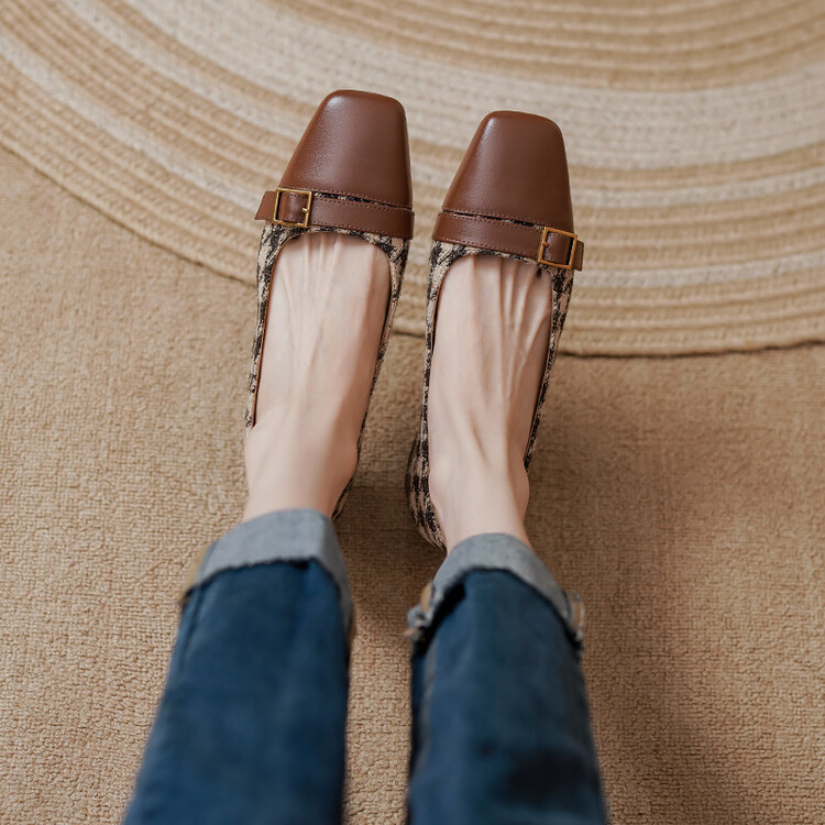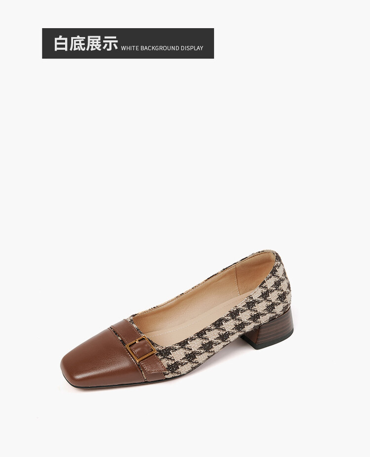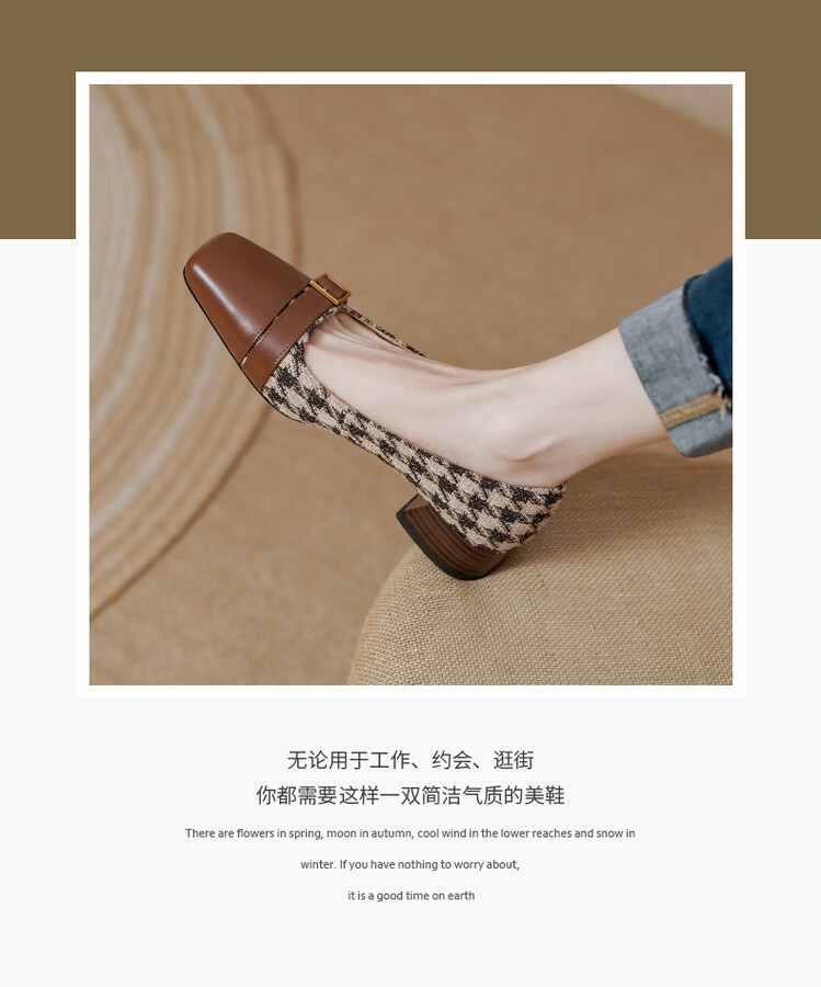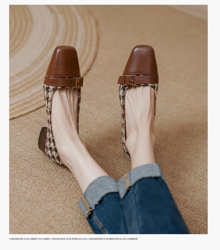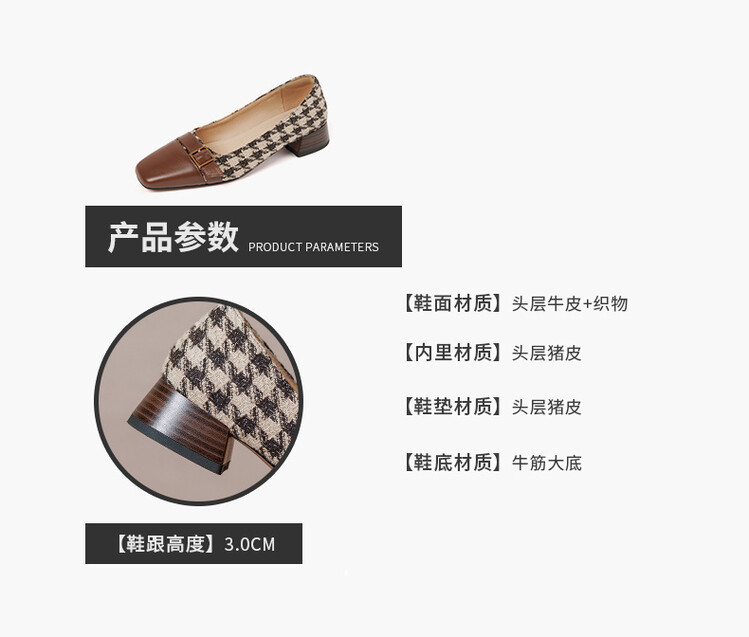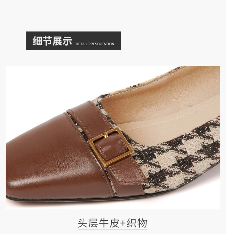 【预售5天】韩版浅口方头低跟单鞋头层牛皮配织物小香风复古女鞋PS&PS1200