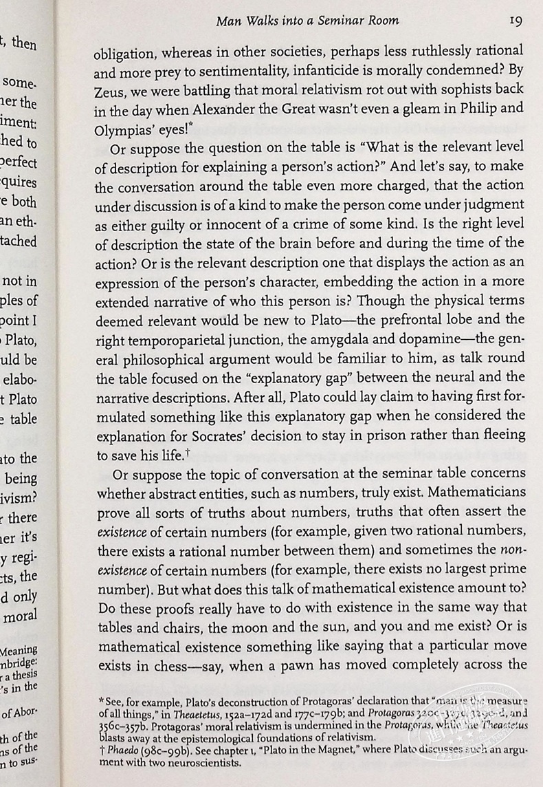 形式轻松,语言诙谐,柏拉图和程序员、育儿专家、脱口秀主持人、神经系统科学家一一对话,有玩笑,有吐槽,也有犀利的妙语。内核深刻,通过探讨当下热点,揭示出哲学追问与思辨在我们认知世界过程中的意义。