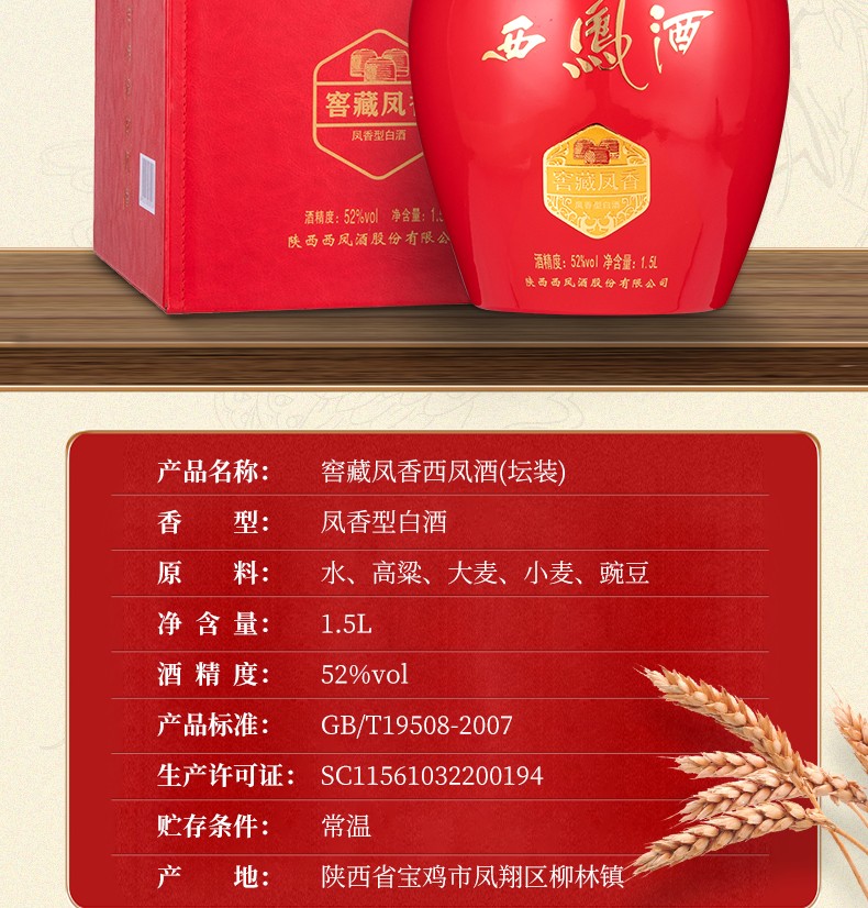 西凤酒(窖藏凤香)凤香型 1.5升 52度 坛装
