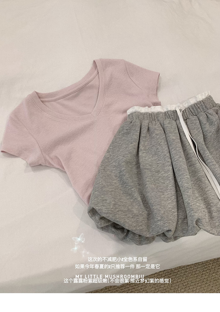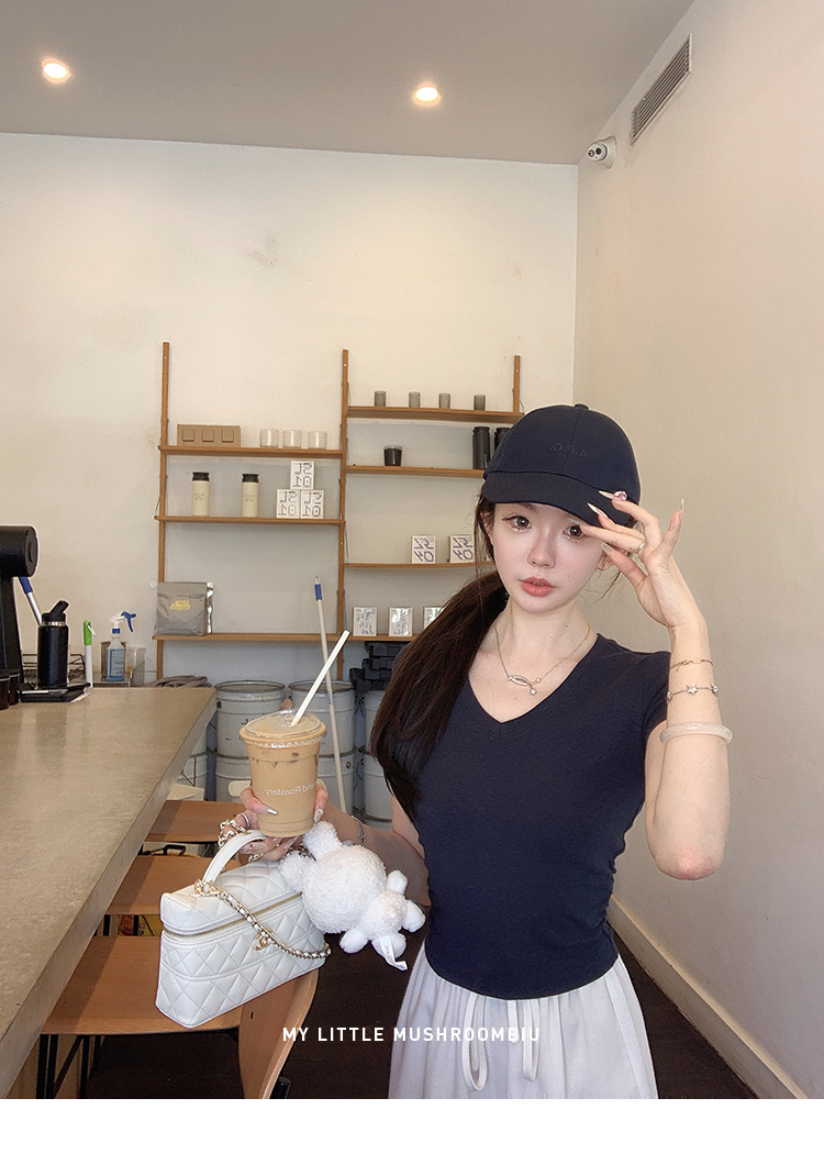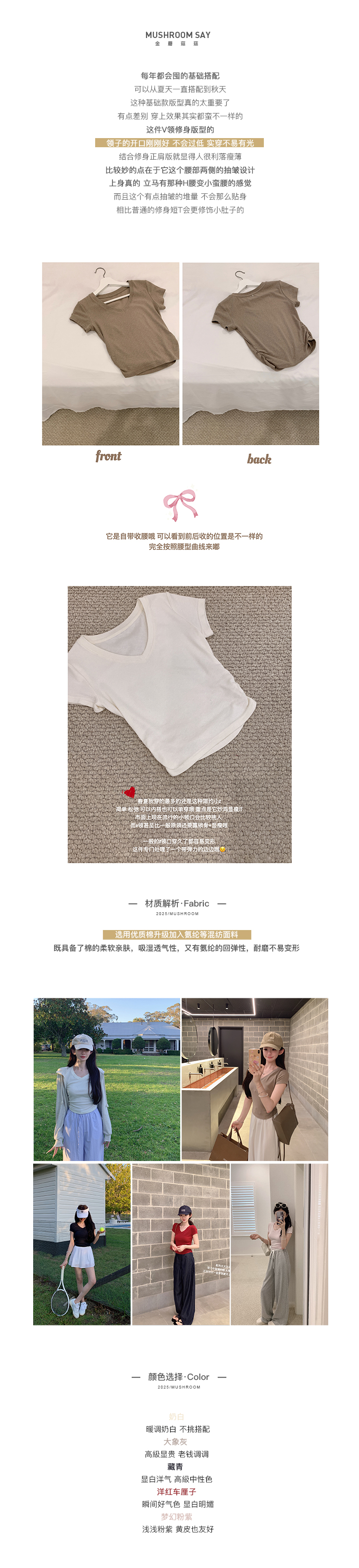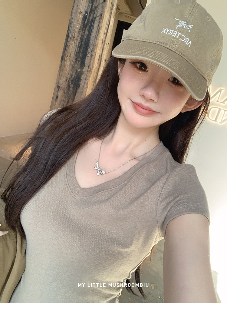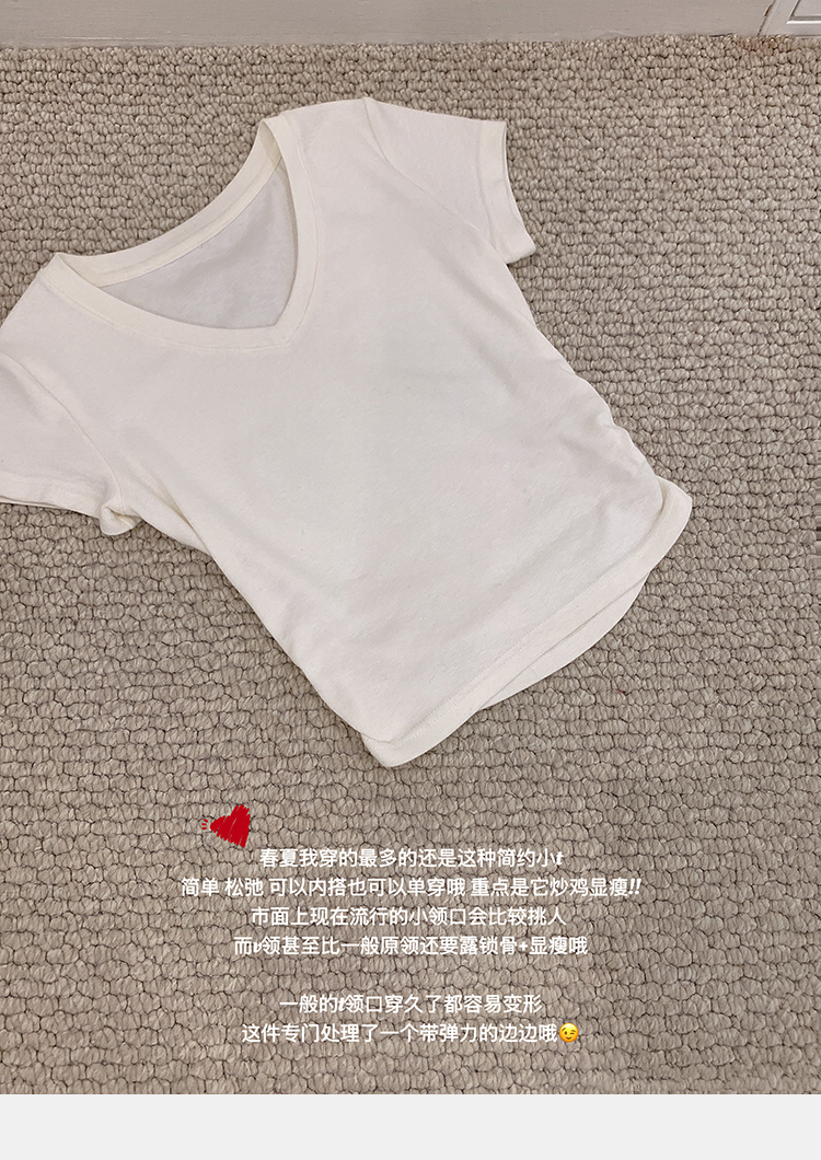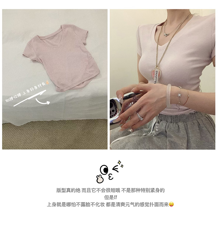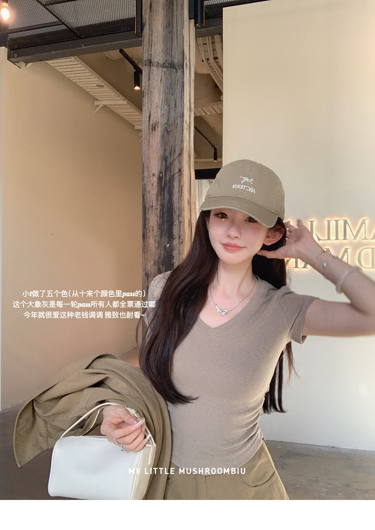 金蘑菇菇 新季不减肥t系列 / 一秒好身材 微妙小版型V领修身短袖