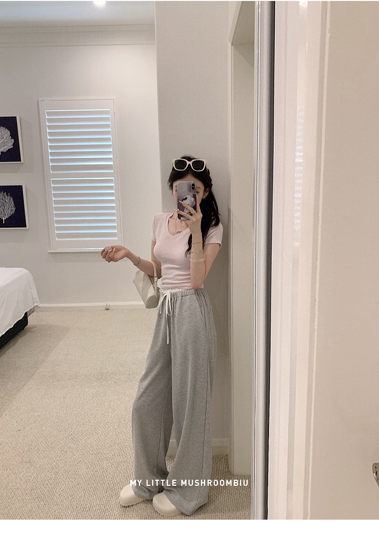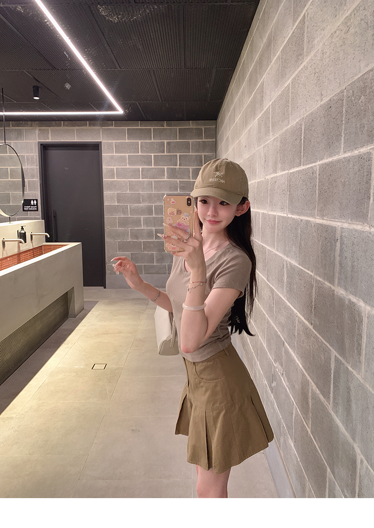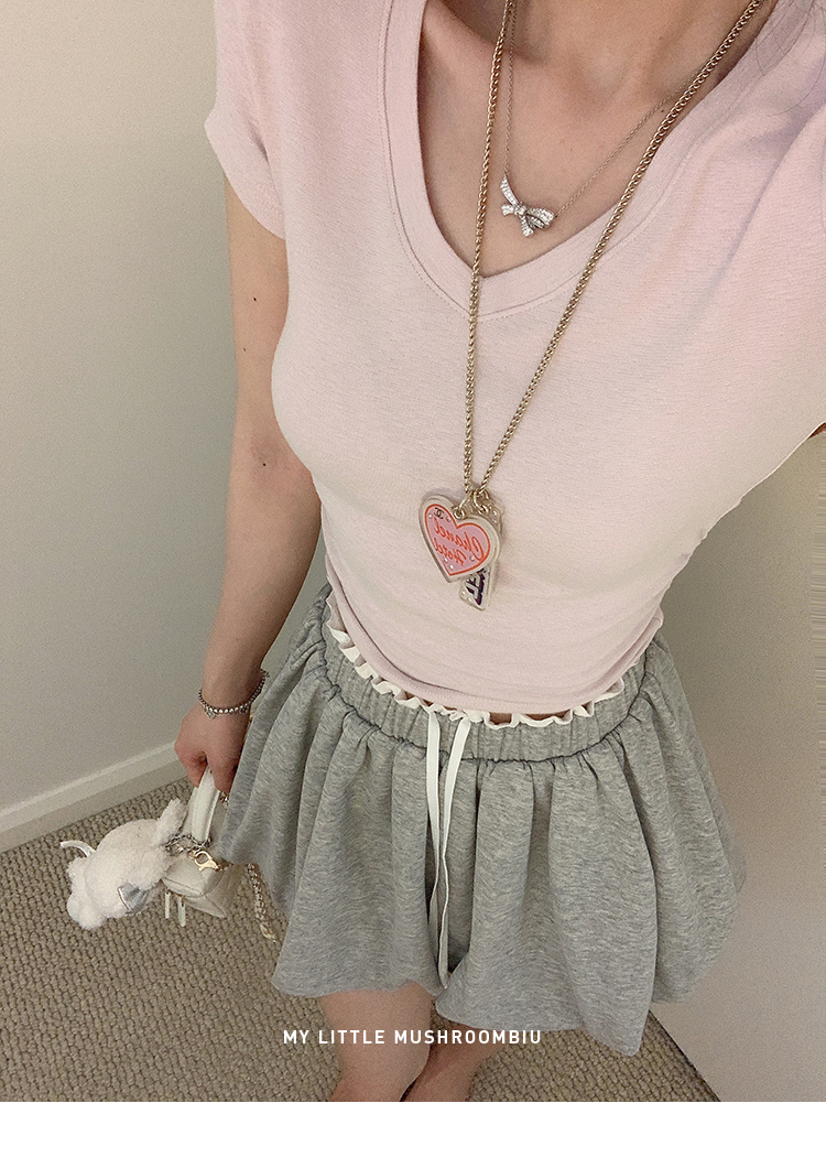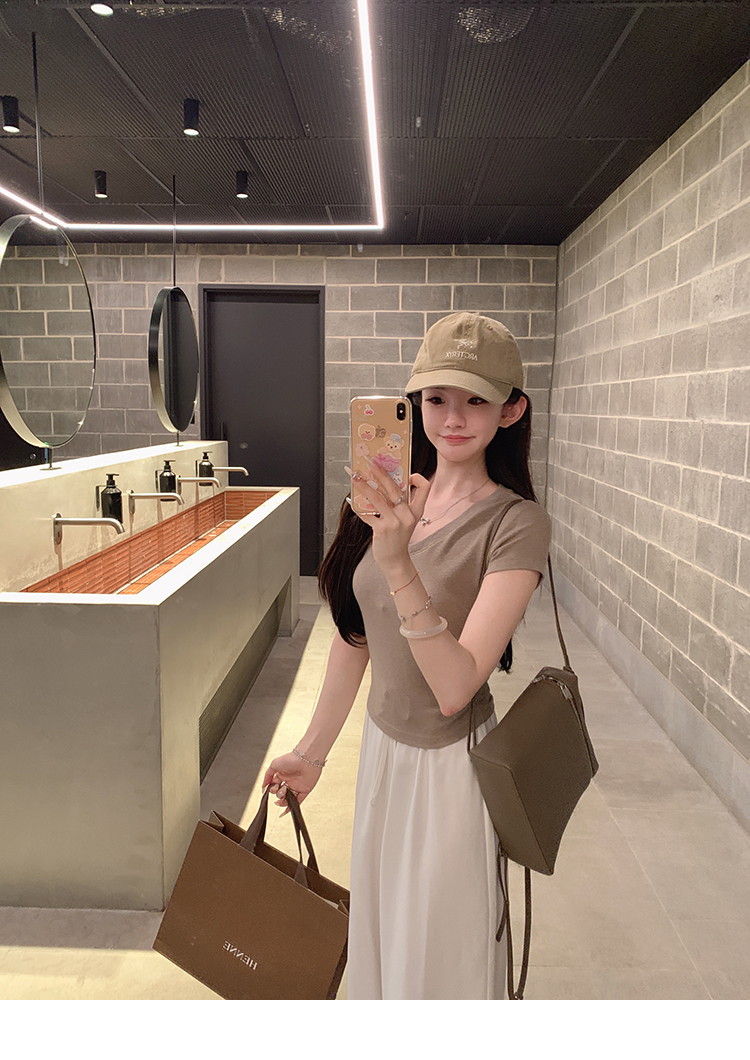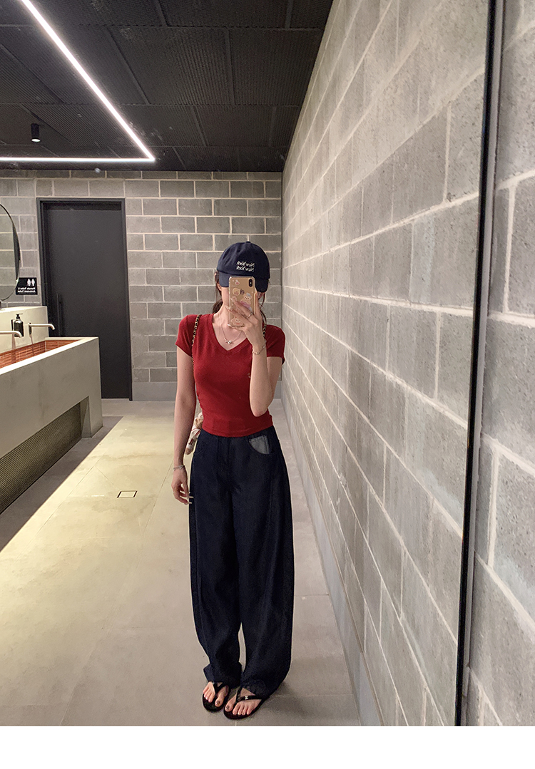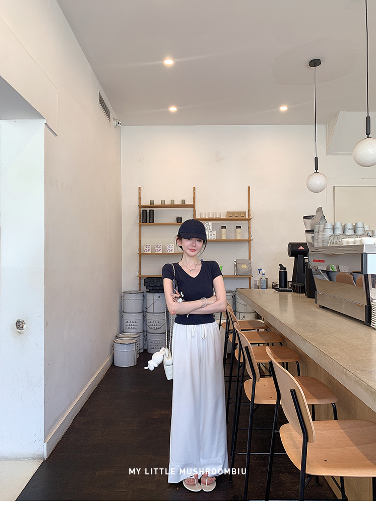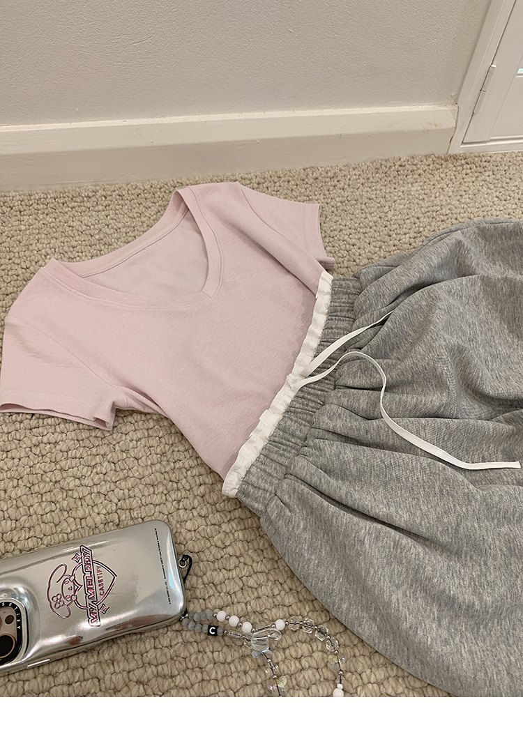 金蘑菇菇 新季不减肥t系列 / 一秒好身材 微妙小版型V领修身短袖