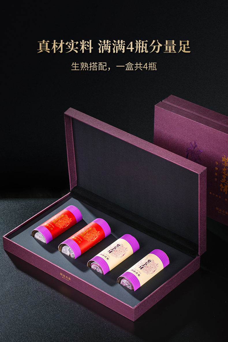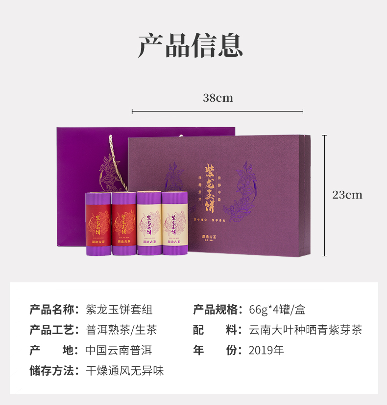 【茶礼】澜沧古茶紫龙玉饼生茶+紫龙玉饼熟茶 各2罐 配紫色专用礼盒1个
