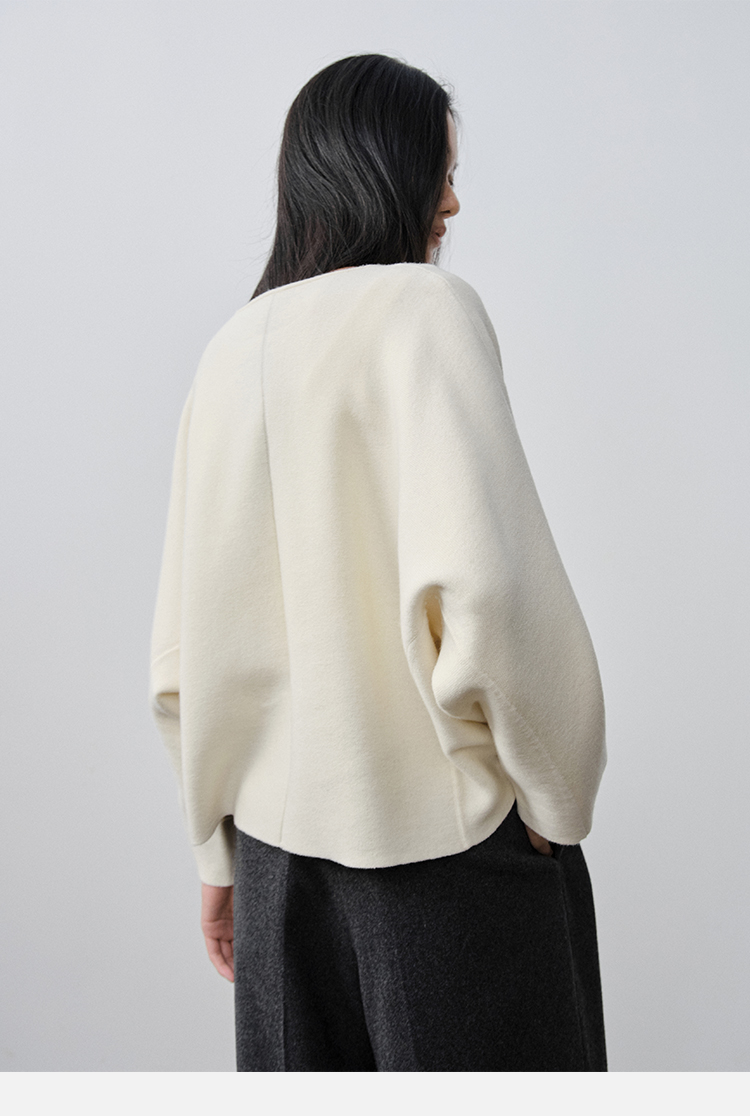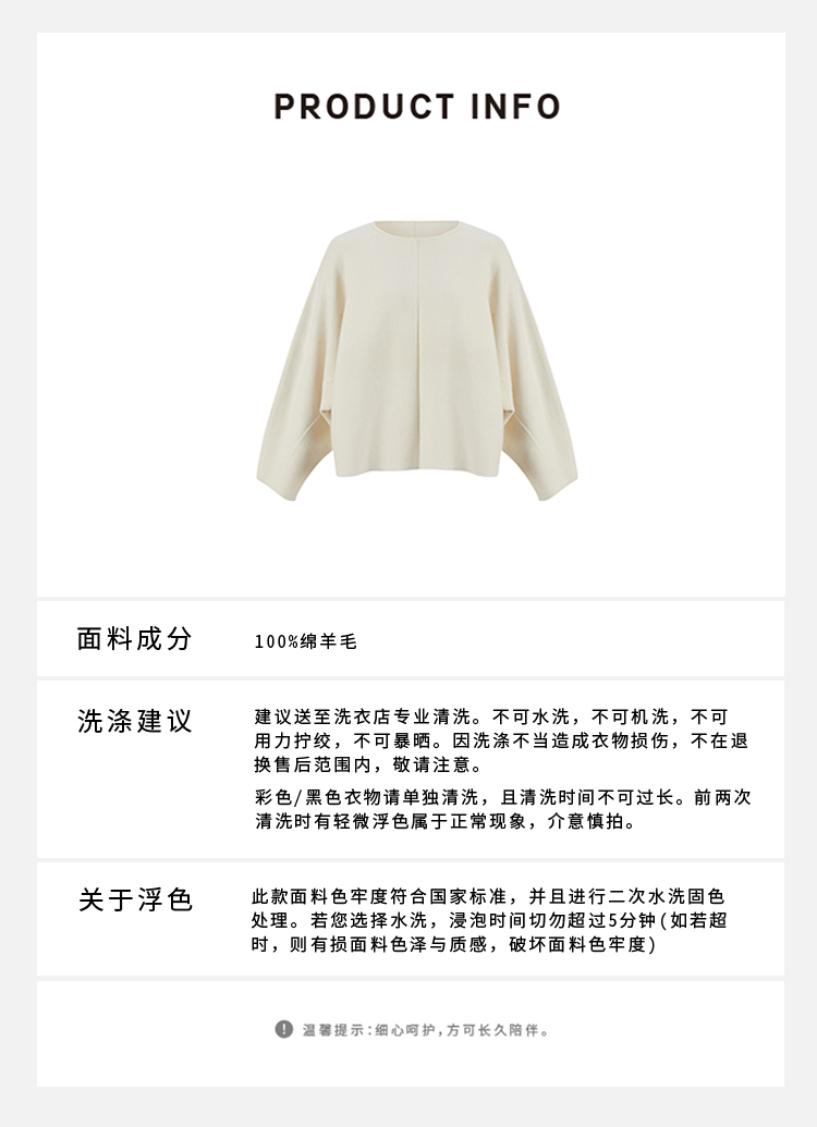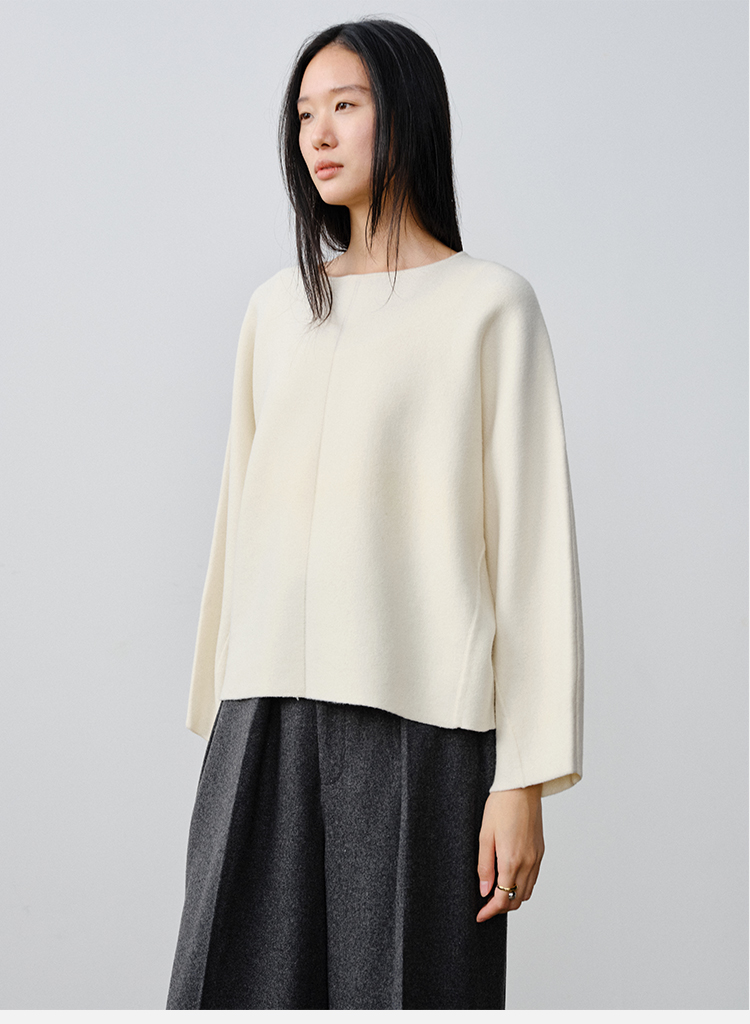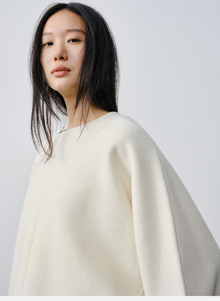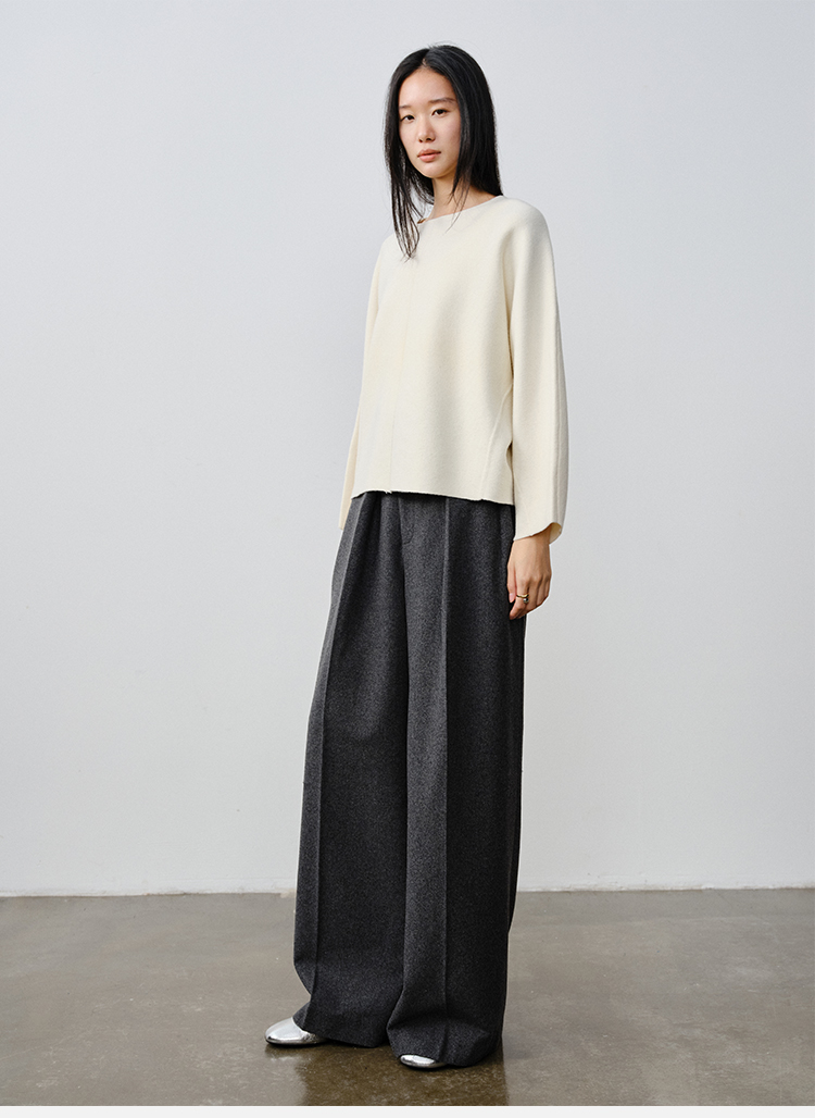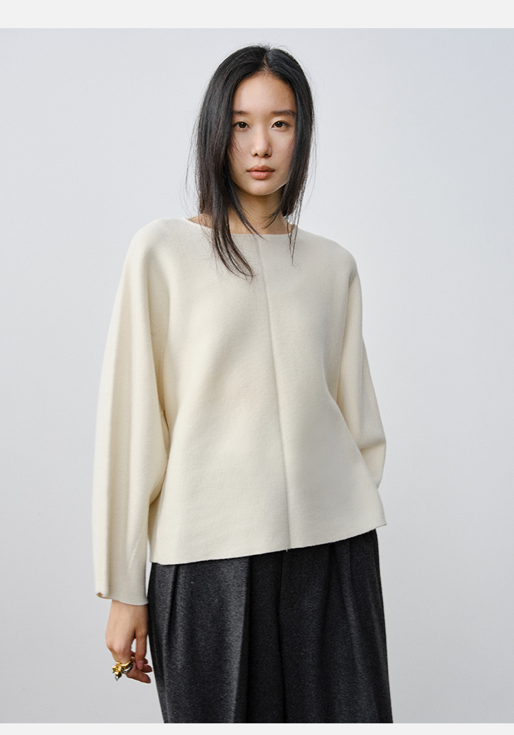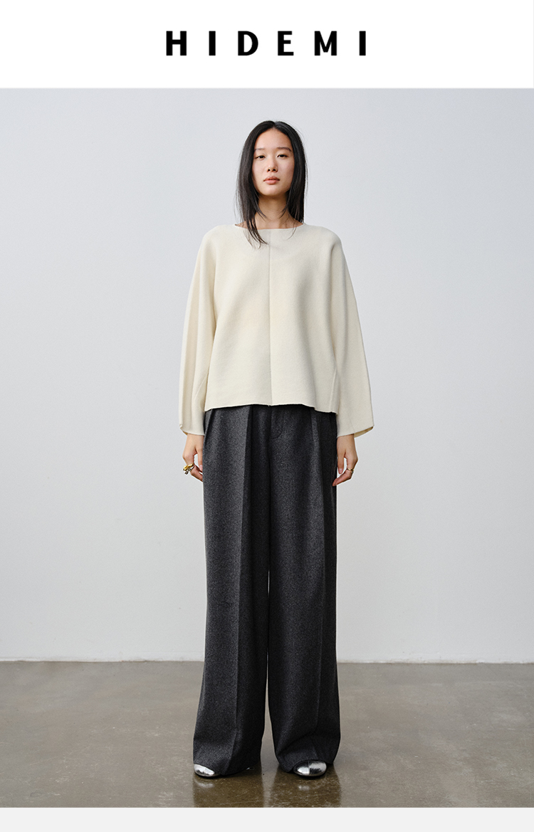 HIDEMI 澳洲美利奴羊毛厚款落肩廓形圆领极简毛衣