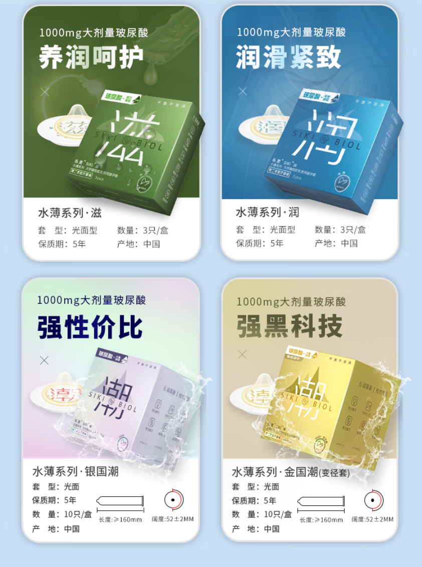 SIKI 私激避孕套冰火两重天沸冰情趣组合超薄003玻尿酸光面型6只