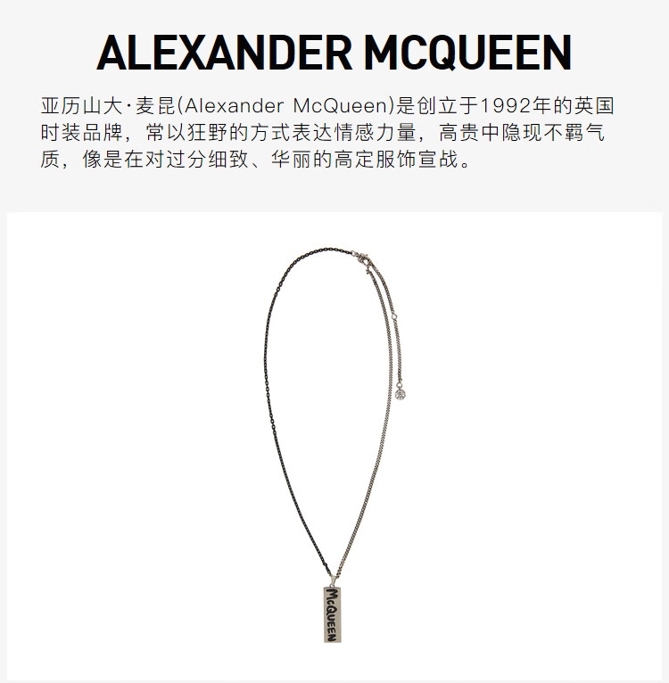 ALEXANDER MCQUEEN 亚历山大麦昆 男士黄铜复古别针骷髅头吊坠项链 七夕礼物 古银色 663862 IAG2Y 1060 均码