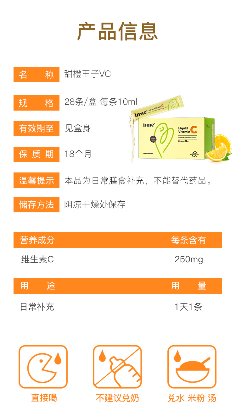 【含邮含税】Inne甜橙王子VC口服液280ml/盒