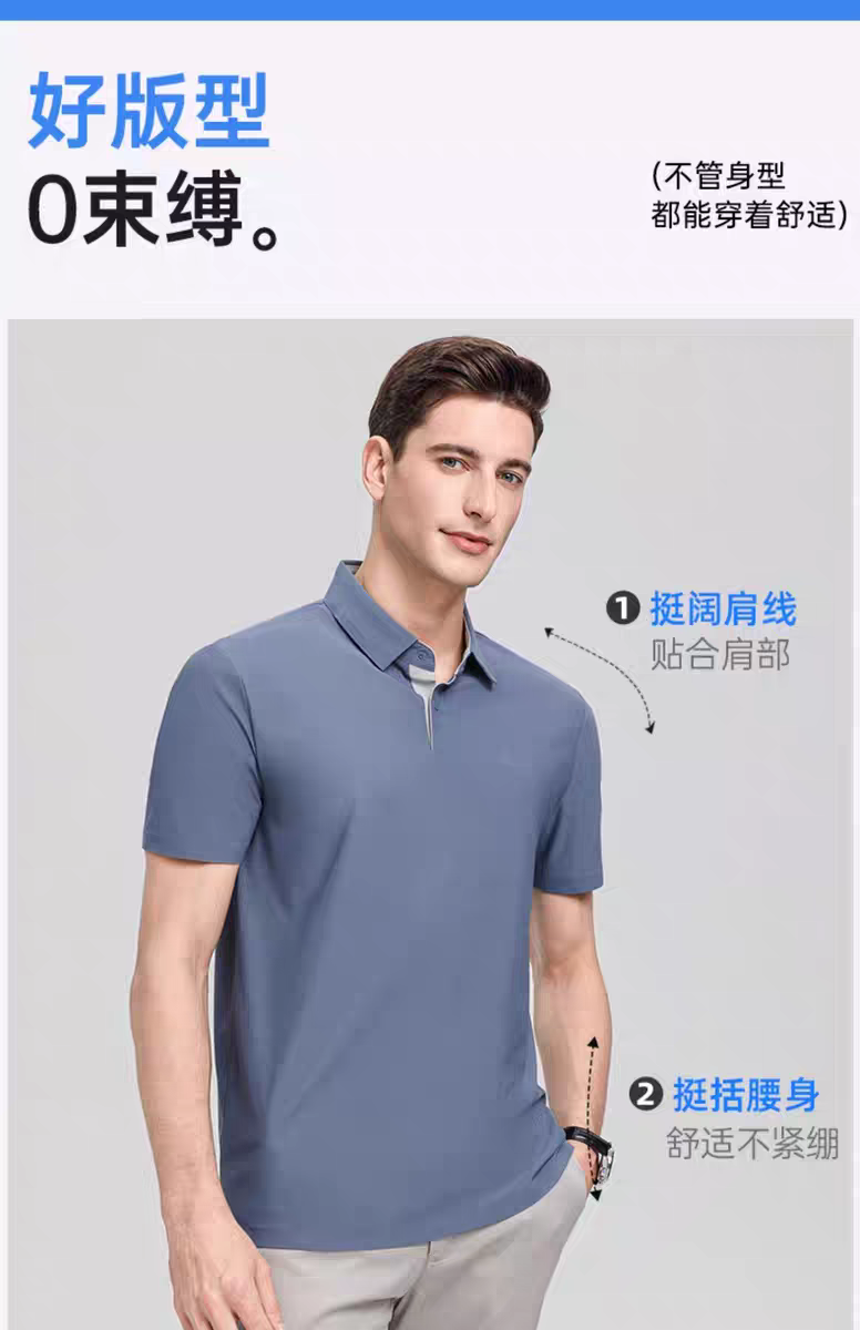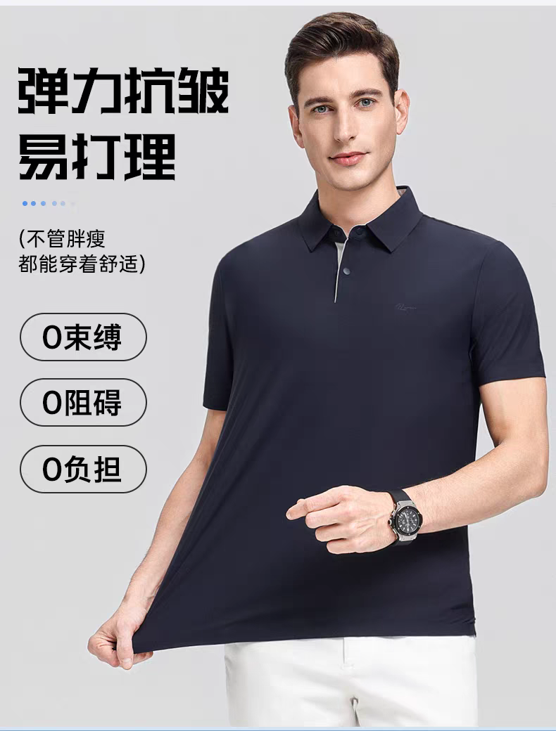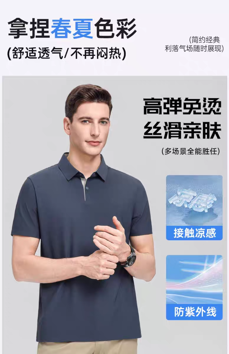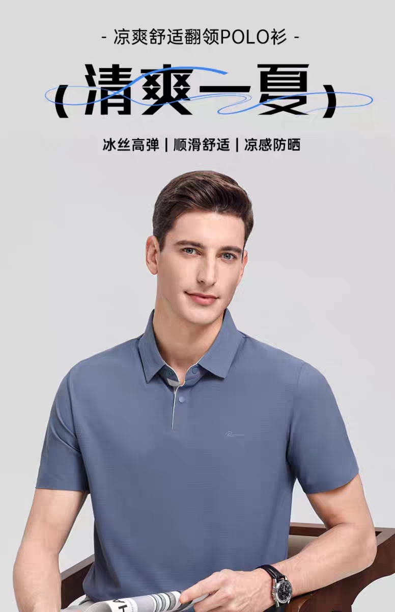 【冰丝高弹+防晒凉感】罗蒙男士抗菌短袖Polo衫2025夏季薄款T恤衫