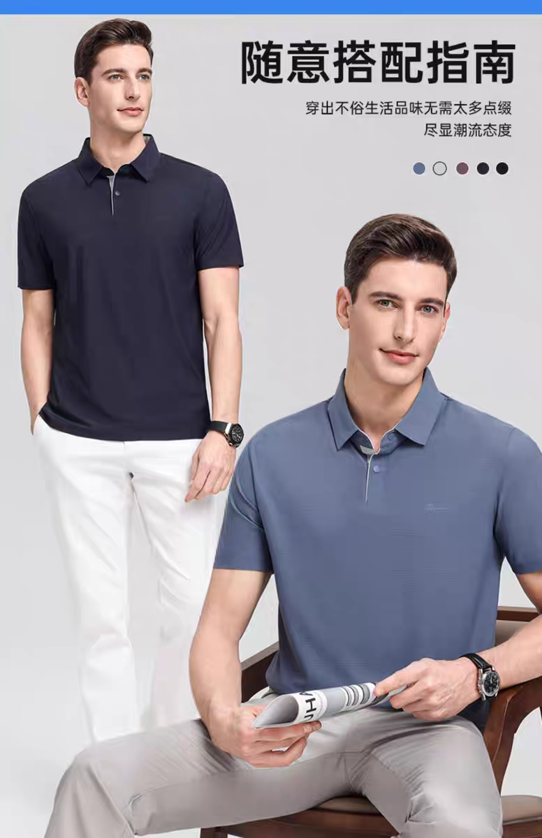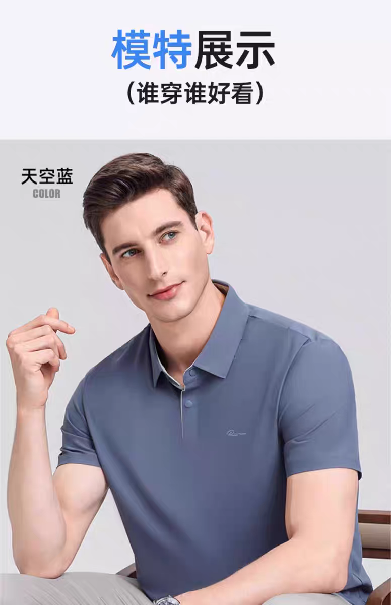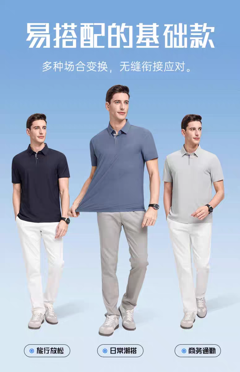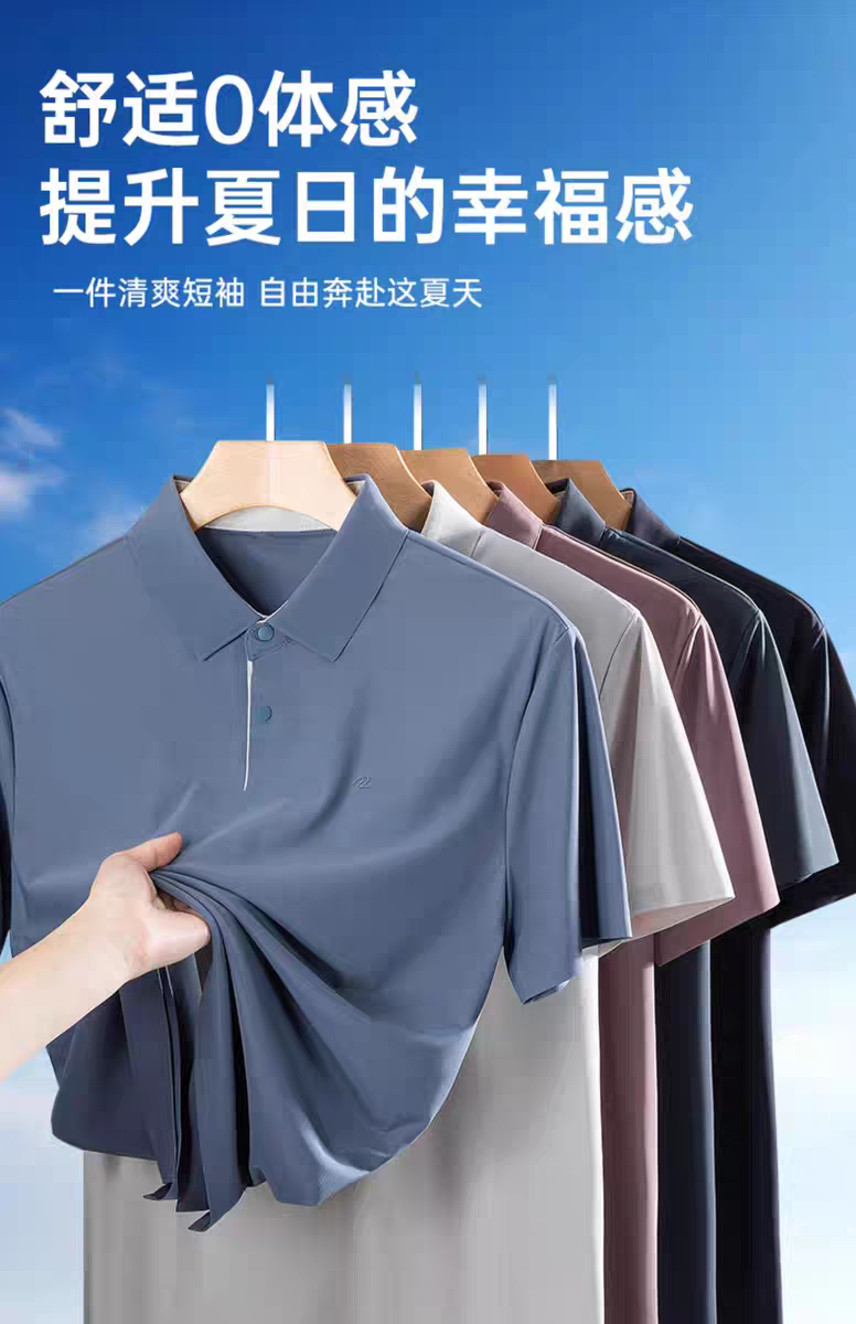 【冰丝高弹+防晒凉感】罗蒙男士抗菌短袖Polo衫2025夏季薄款T恤衫