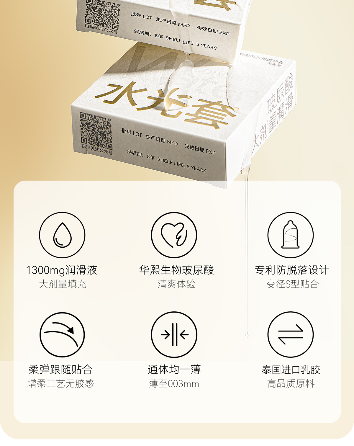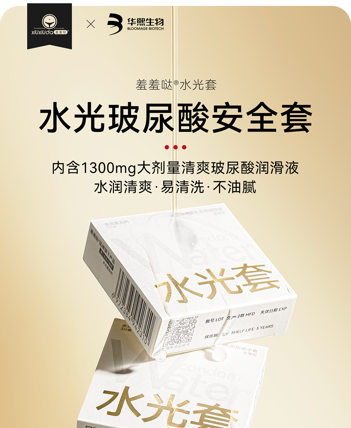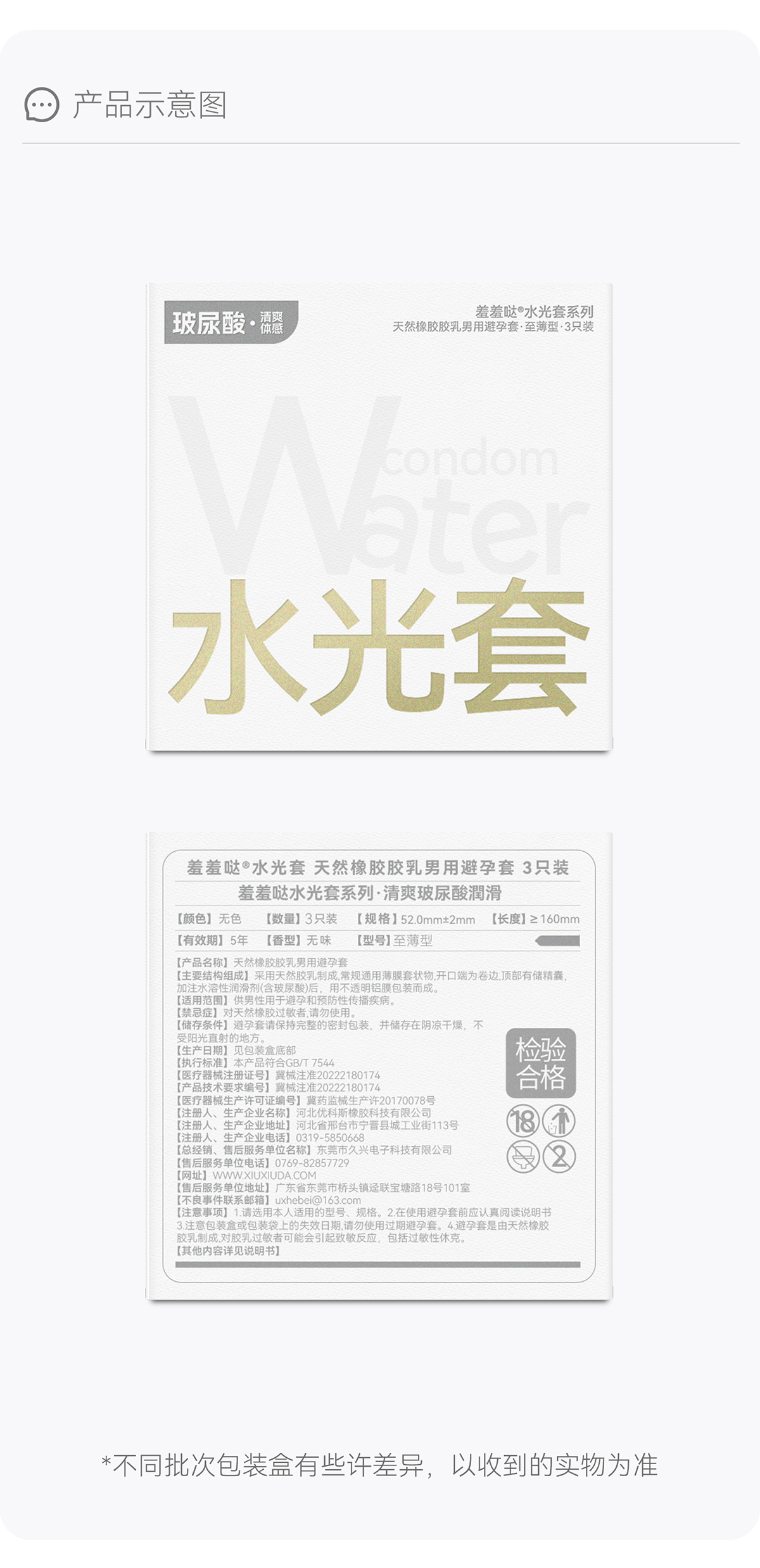 羞羞哒水光套玻尿酸润滑水润型安全套避孕套超薄计生用品中号男用夫妻