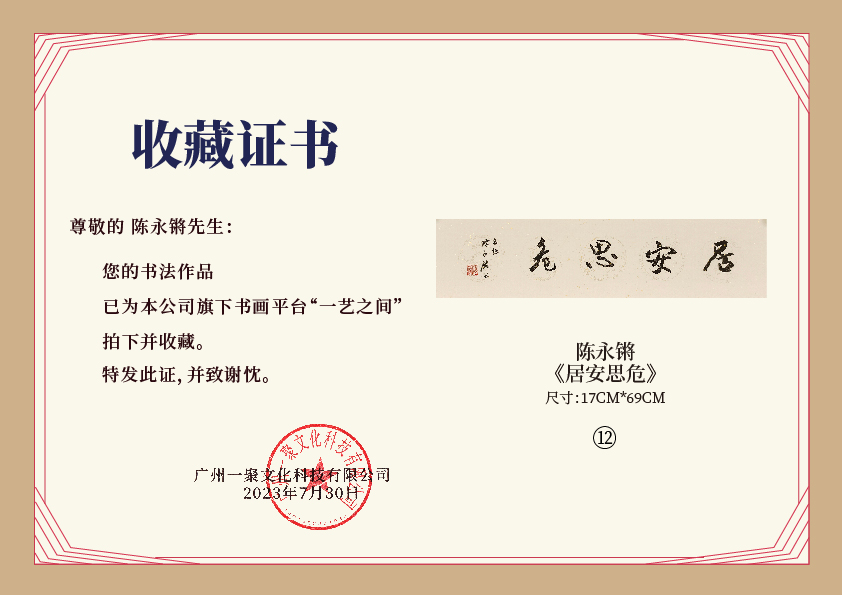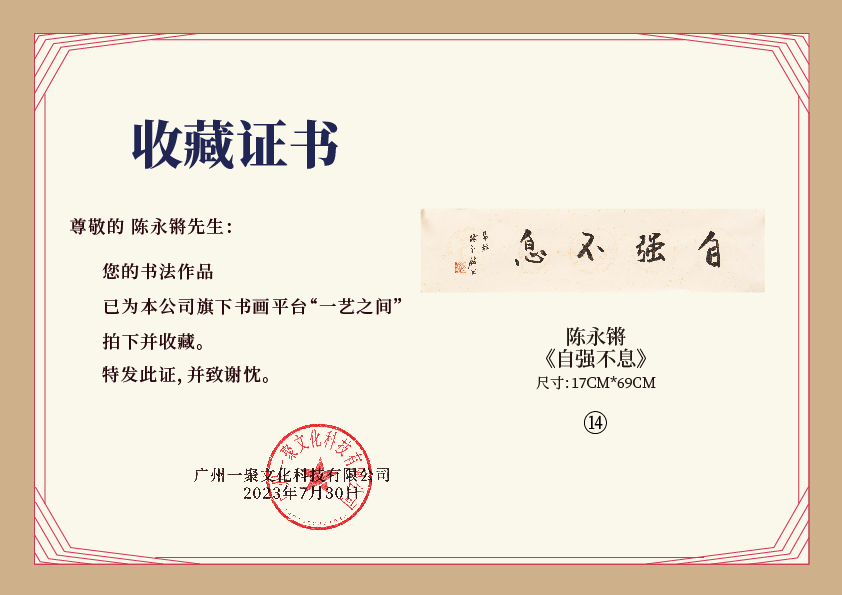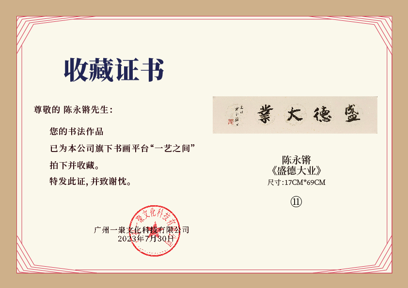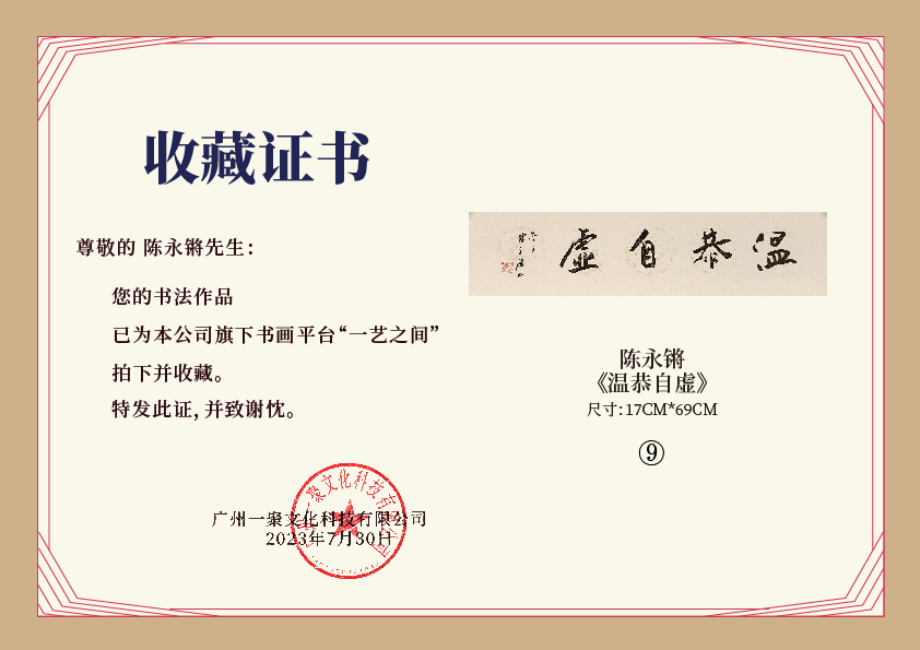 注意:下方收藏证书仅为微信视频号官方要求示意在“一艺之间”下单销售产品均为老师本人授权正版,并非随单赠送,敬请理解。