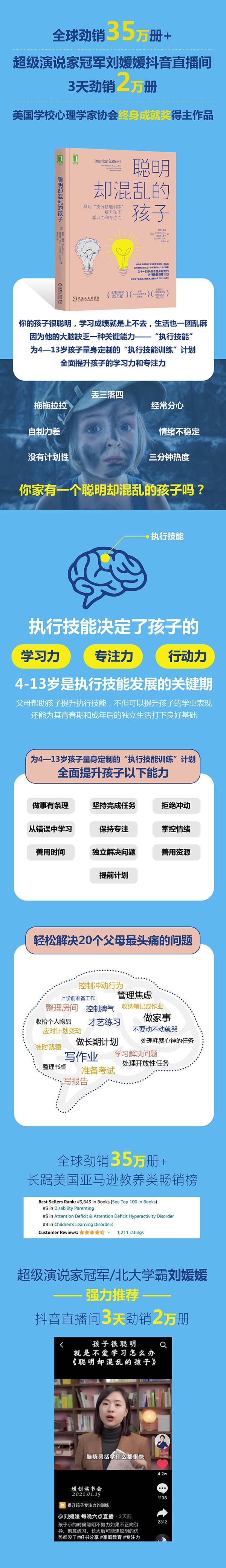 你家有一个聪明却混乱的孩子吗?他虽然脑子灵活,学什么都很快,却无法管理好自己的时间和精力,丢三落四,拖拖拉拉,经常分心,自制力差,情绪不稳定,没有计划性,做什么都“三分钟热度”,所以潜力发挥不出来,学习成绩上不去,生活像一团乱麻,让你操心又着急。