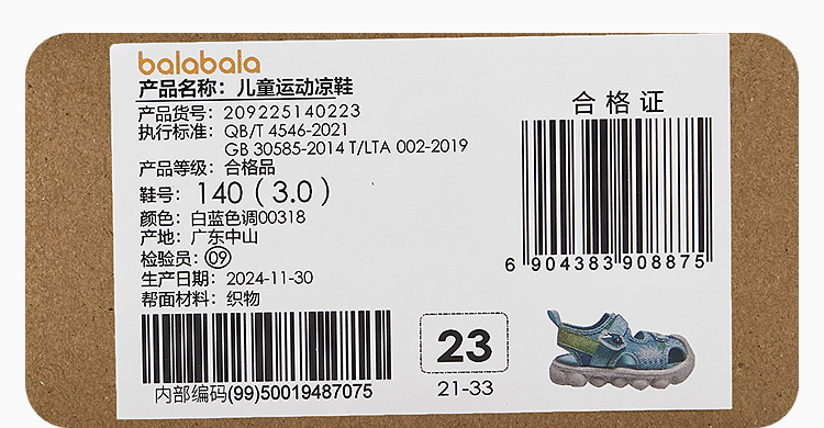 巴拉巴拉童鞋儿童运动凉鞋男童女童鞋子透气2025夏新款沙滩鞋防滑