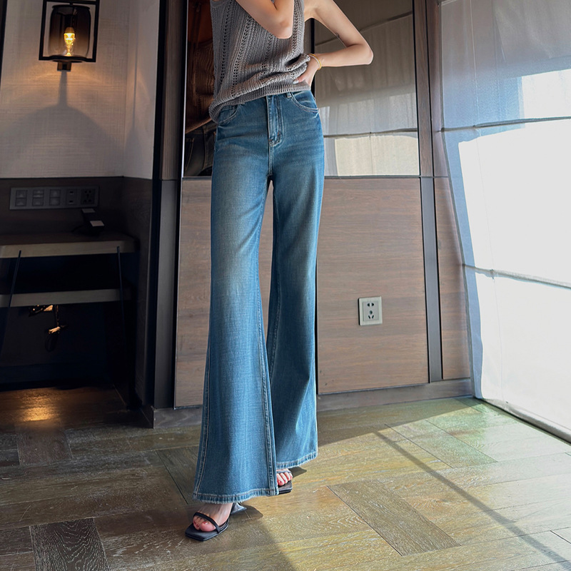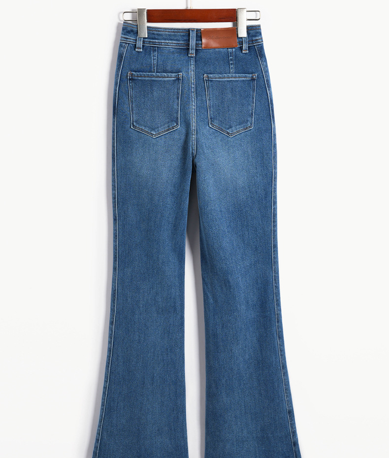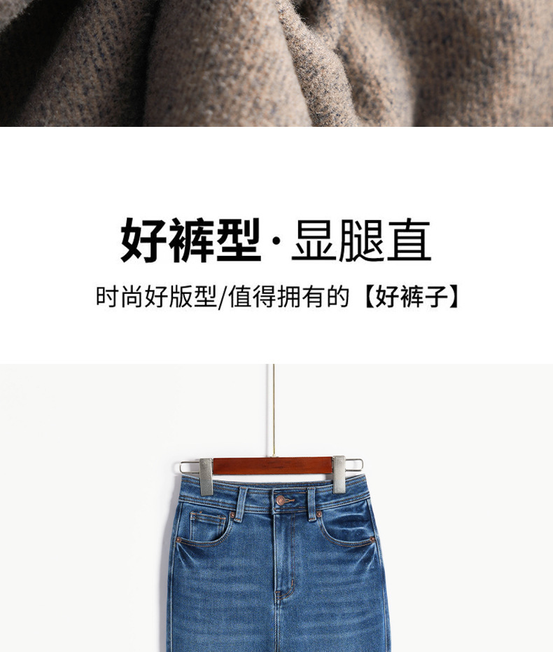 【精品牛仔面料❗️亲肤柔韧质感有型】超模腿微喇叭牛仔裤女25秋冬款加绒高腰四面弹修身拖地港风显瘦直。jb
