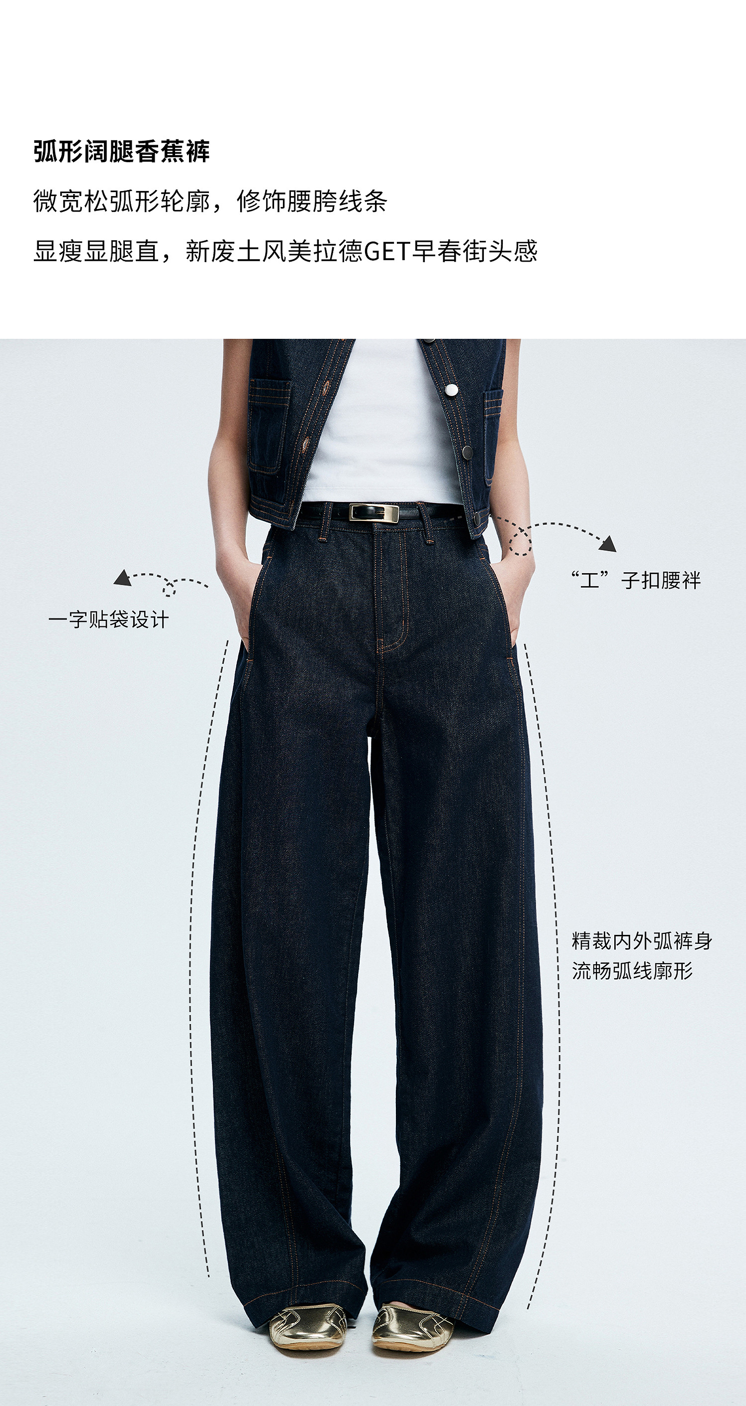 【弯刀裤】初棉侧缝前移设计香蕉裤牛仔裤362619008