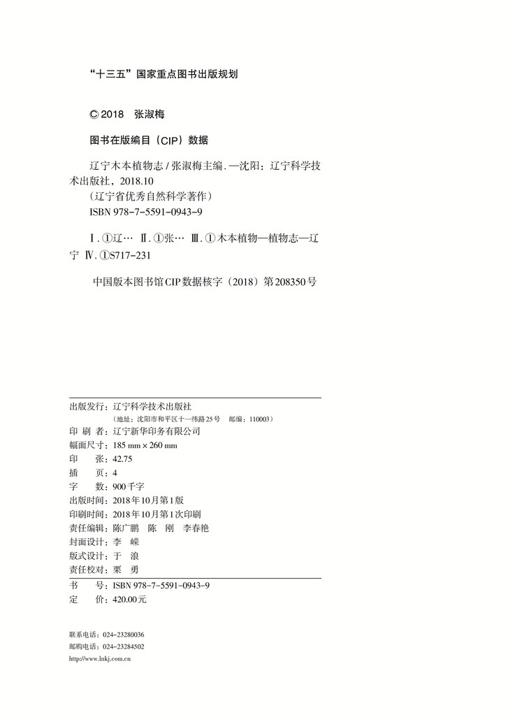 本书收录辽宁木本植物81科187属638种6亚种111变种48变型,计803个种及种下单位。另外,本书还收录了数十个栽培品种。其中,野生357种6变种76变种17变型,计456个种及种下单位;栽培281种35变种31变型,计347个种及种下单位。本书是迄今为止东北收录木本植物总量最多的资料。