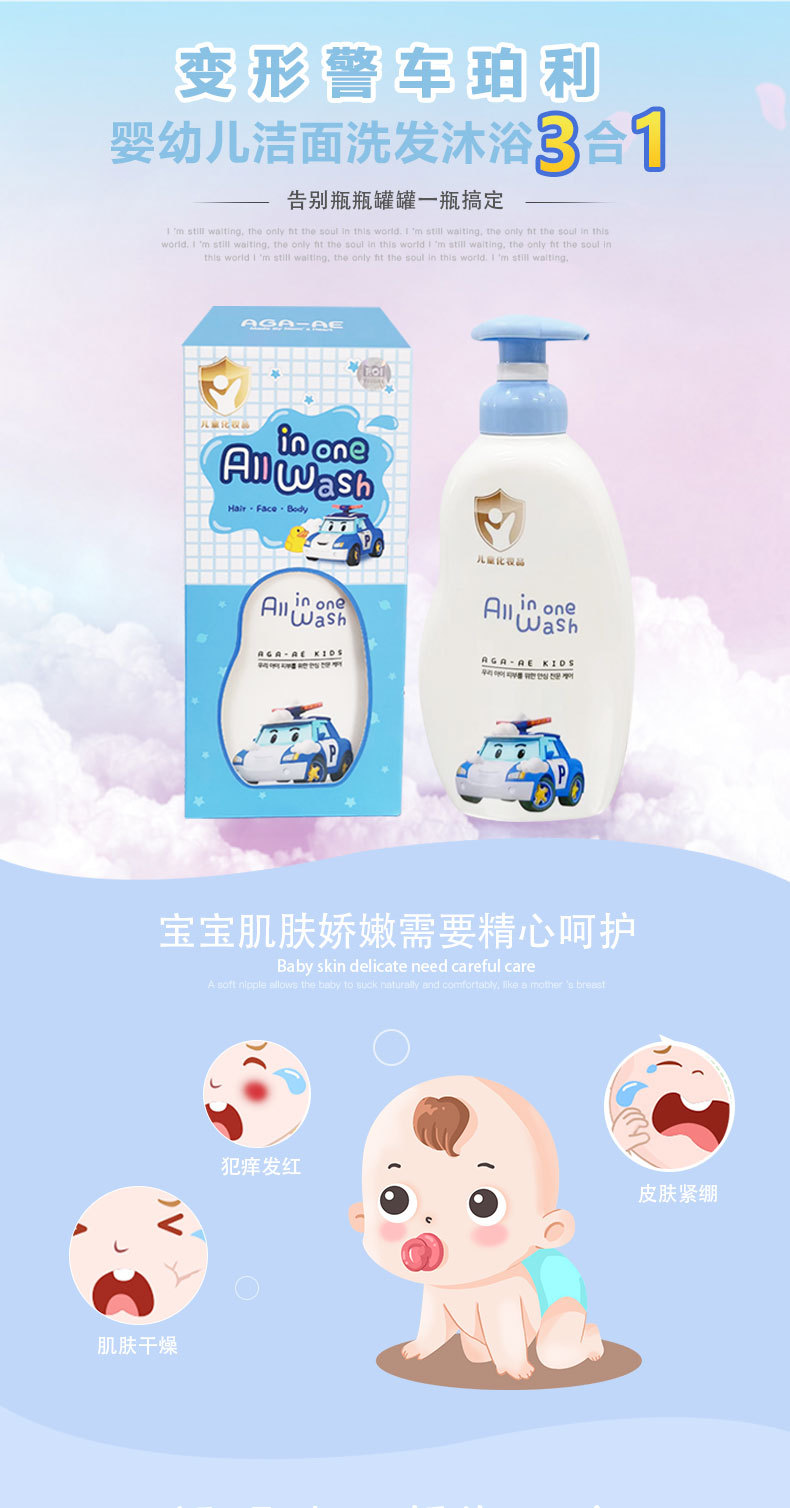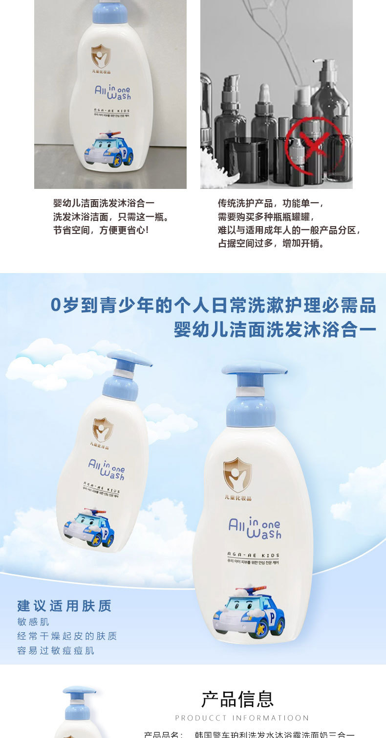 【中欧班列精选】韩国我珂爱婴幼儿洁面洗发沐浴合一 原装进口婴宝宝洗发水洗护湿清洁温和无刺激 350ml/瓶WHBX