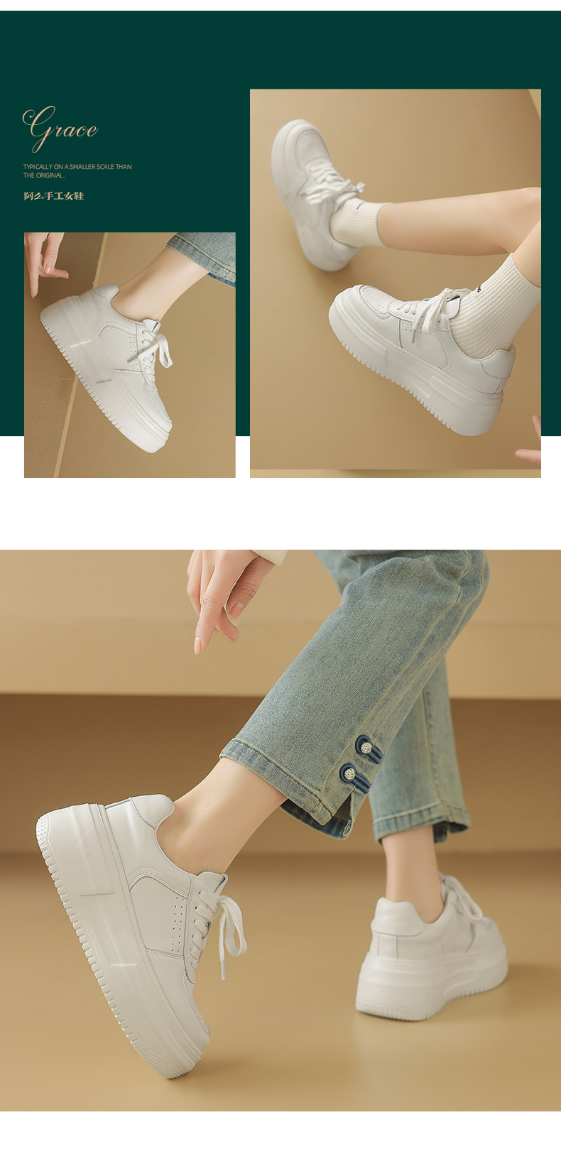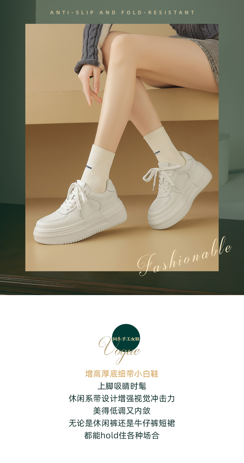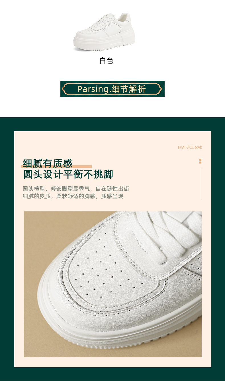 阿么手工女鞋透气厚底小白鞋ins百搭增高6CM时尚松糕底百搭板鞋女