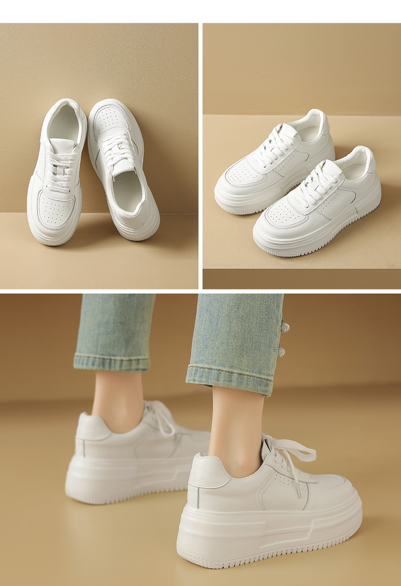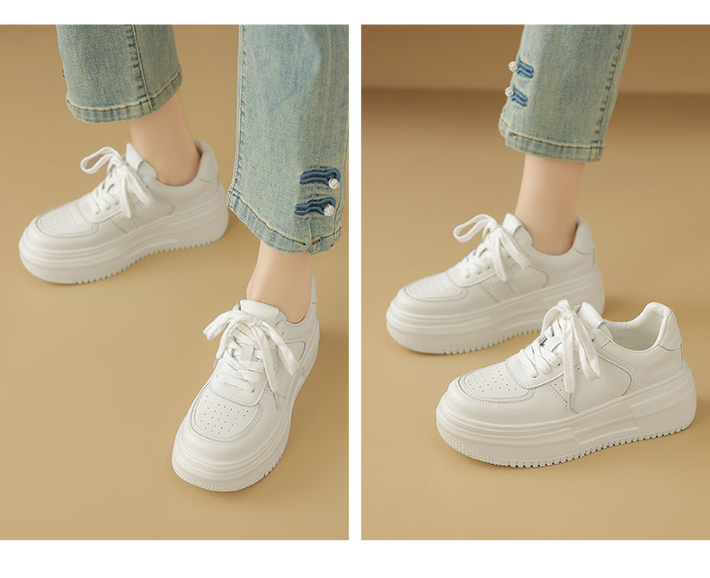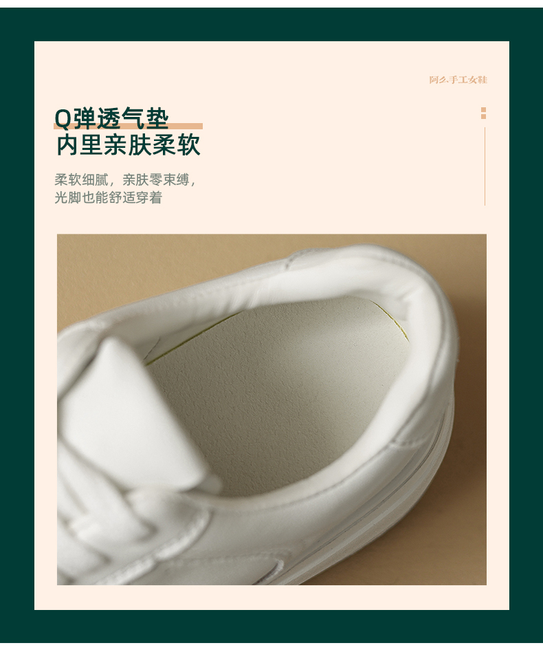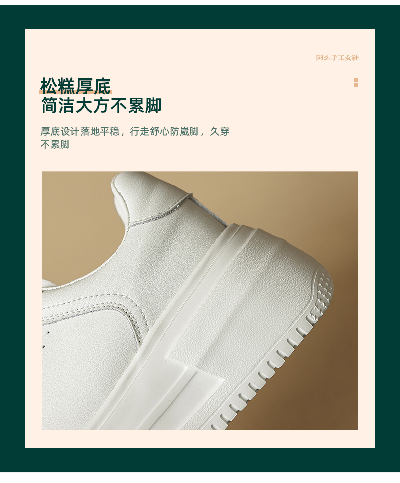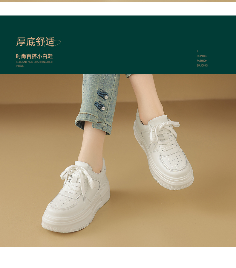 阿么手工女鞋透气厚底小白鞋ins百搭增高6CM时尚松糕底百搭板鞋女