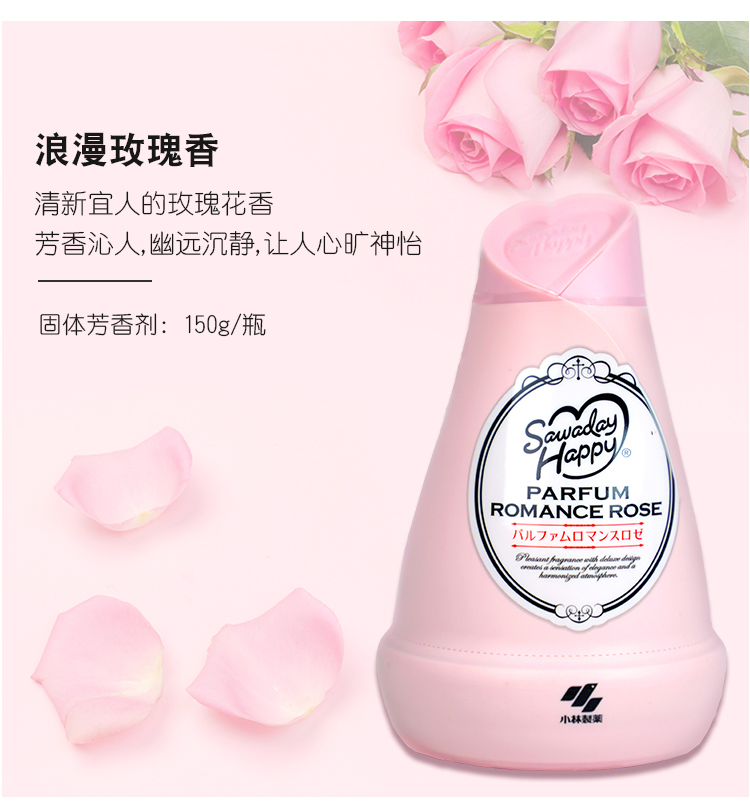 WHBX【中欧班列精选2瓶】日本小林固体消臭元玫瑰香 原装进口固体空气清新剂消臭元室内除臭卧室香薰芳香 150g/瓶