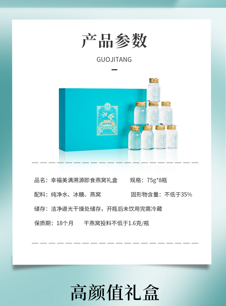国济堂 幸福美满溯源即食燕窝礼盒 75g*8瓶
