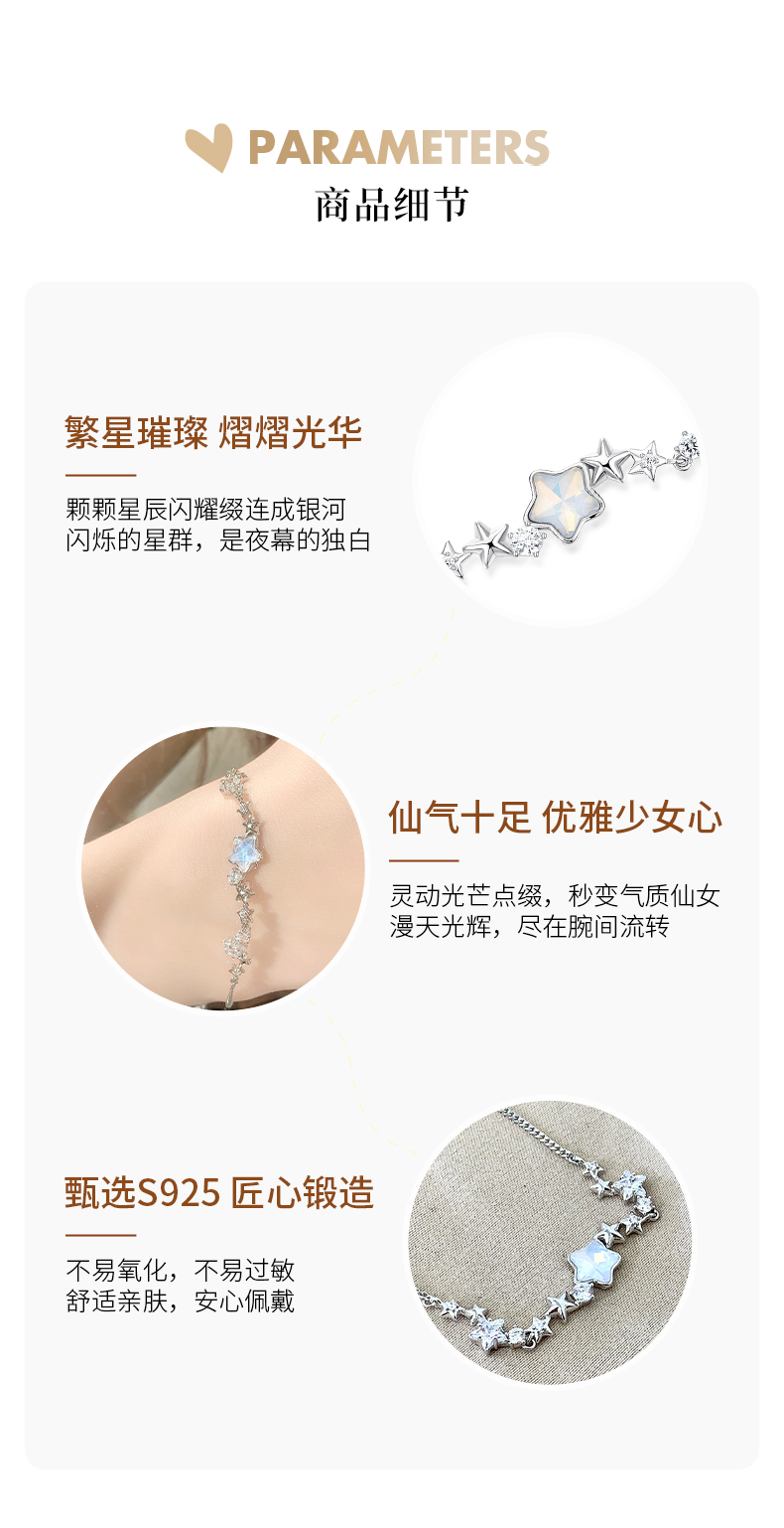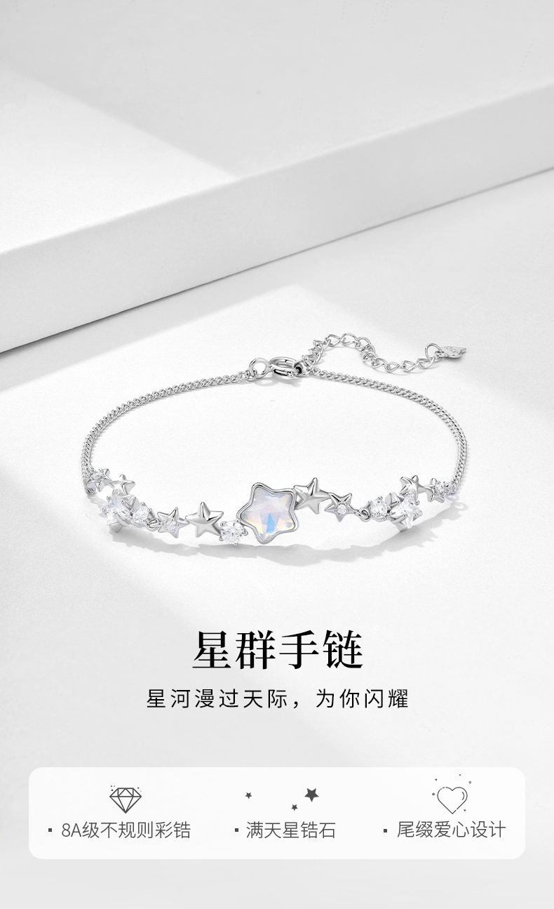 卡蒂罗/KADER 璀璨满天星 星群手链 在逃公主闪耀五芒星梦幻设计彩锆手饰 闪耀银河浪漫星点配饰 925银 情人节礼物