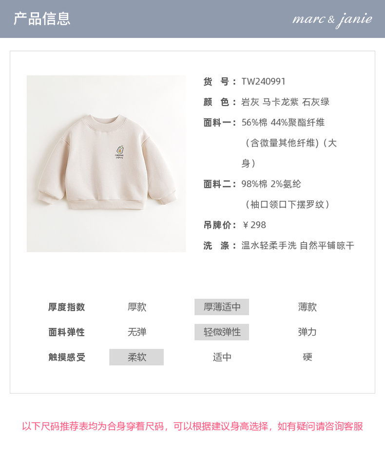 【抗静电】马克珍妮男女童山系户外宽松加绒卫衣秋冬新款240991