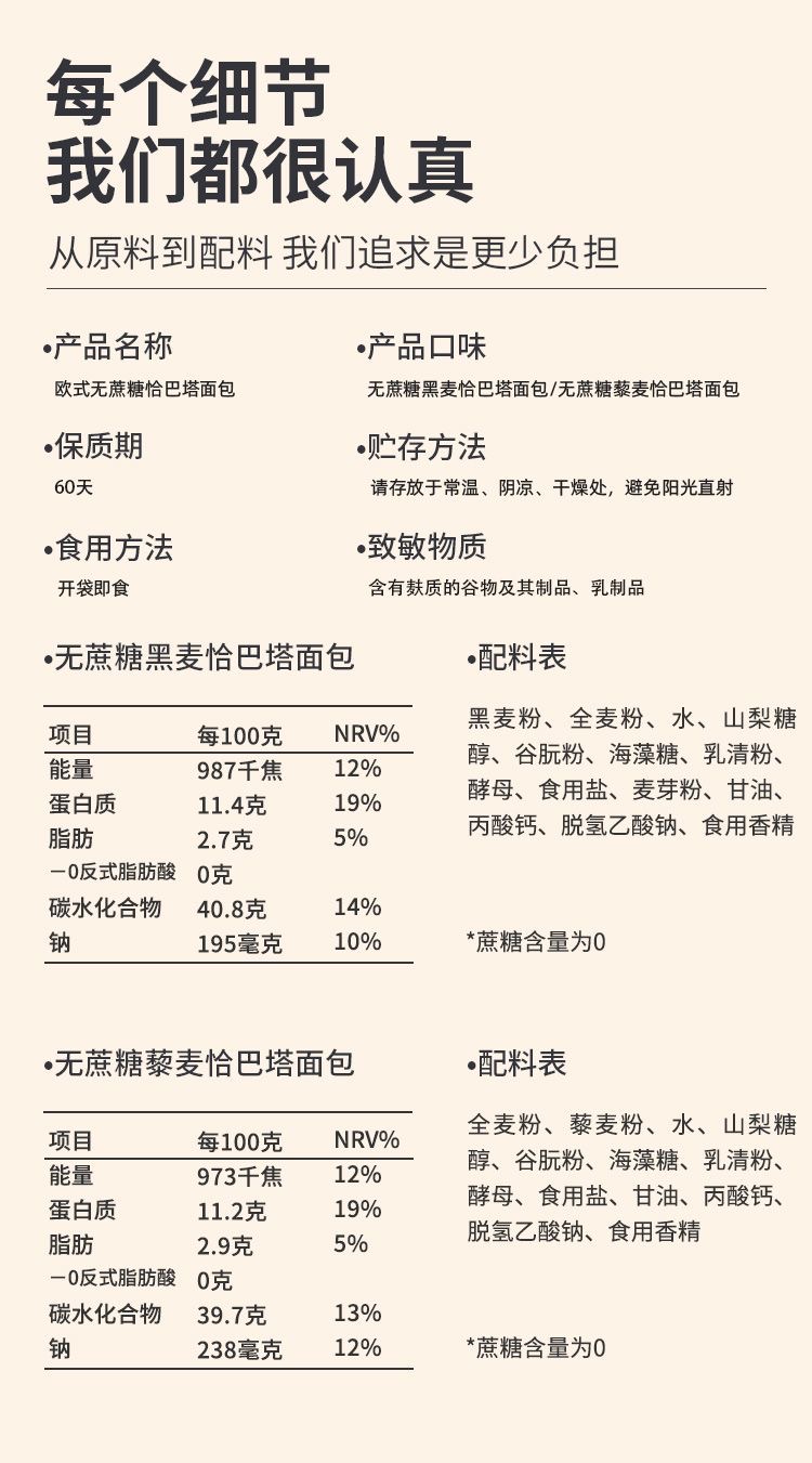 【不单独添加蔗糖!藜麦黑麦恰巴塔】全麦扛饿饱腹 新鲜制作 欧式新主食 粗粮面包健身早餐代餐用健康
