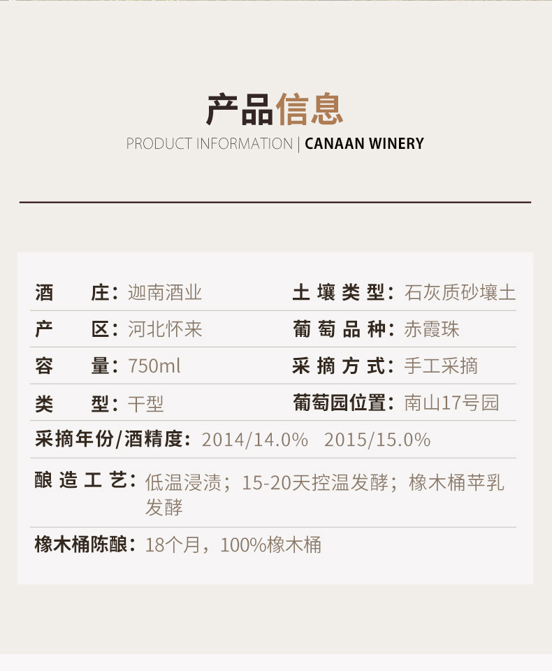 【诗百篇】中国怀来迦南酒业 珍藏赤霞珠干红葡萄酒2015 珍藏级别用来宴客和馈赠都尽显规格