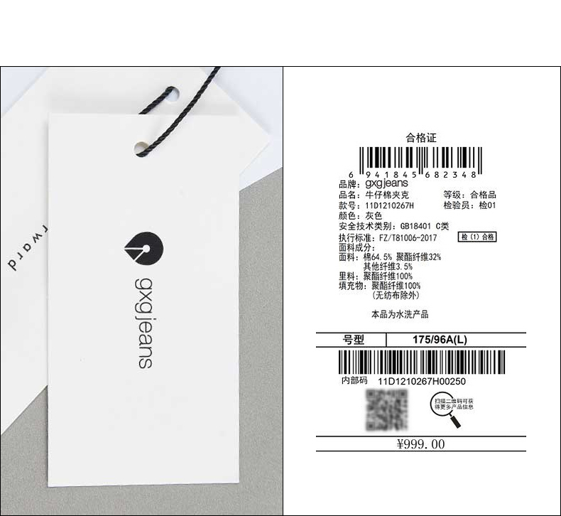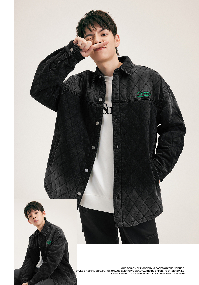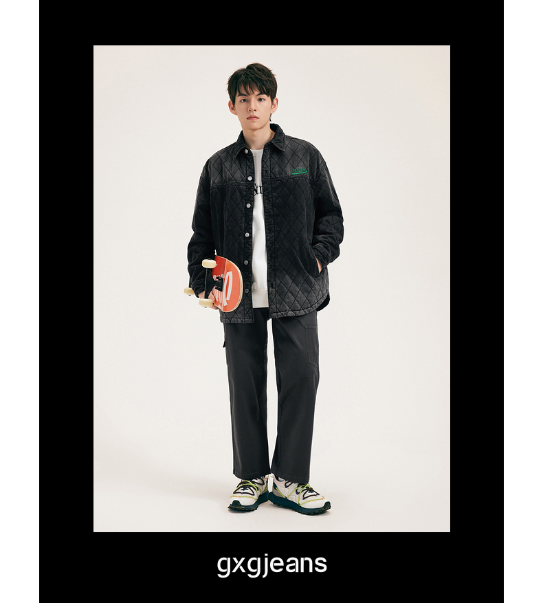 gxg.jeans男装冬保暖牛仔夹棉外套男青年时尚衬衫夹克潮