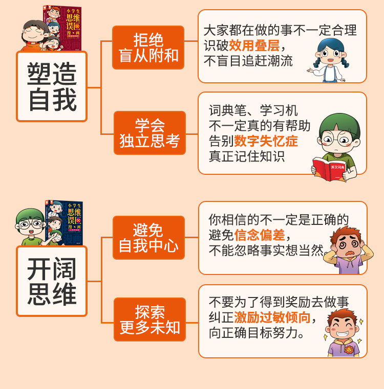 《小学生思维漫画》全4册 6-14岁 4大领域 10个方面 80种思维方式 60种思维误区 思考快人一步,成长事半功倍