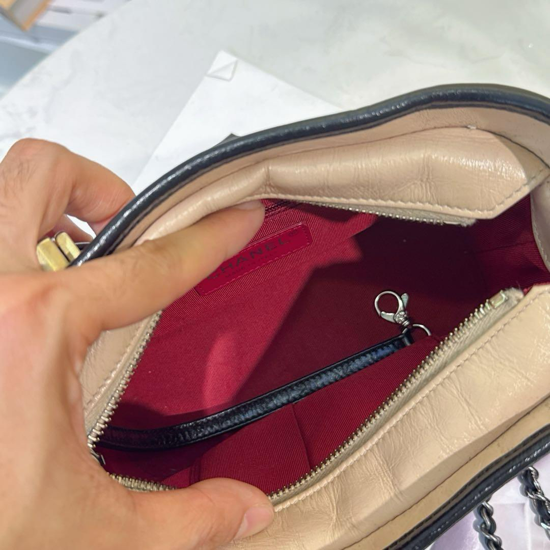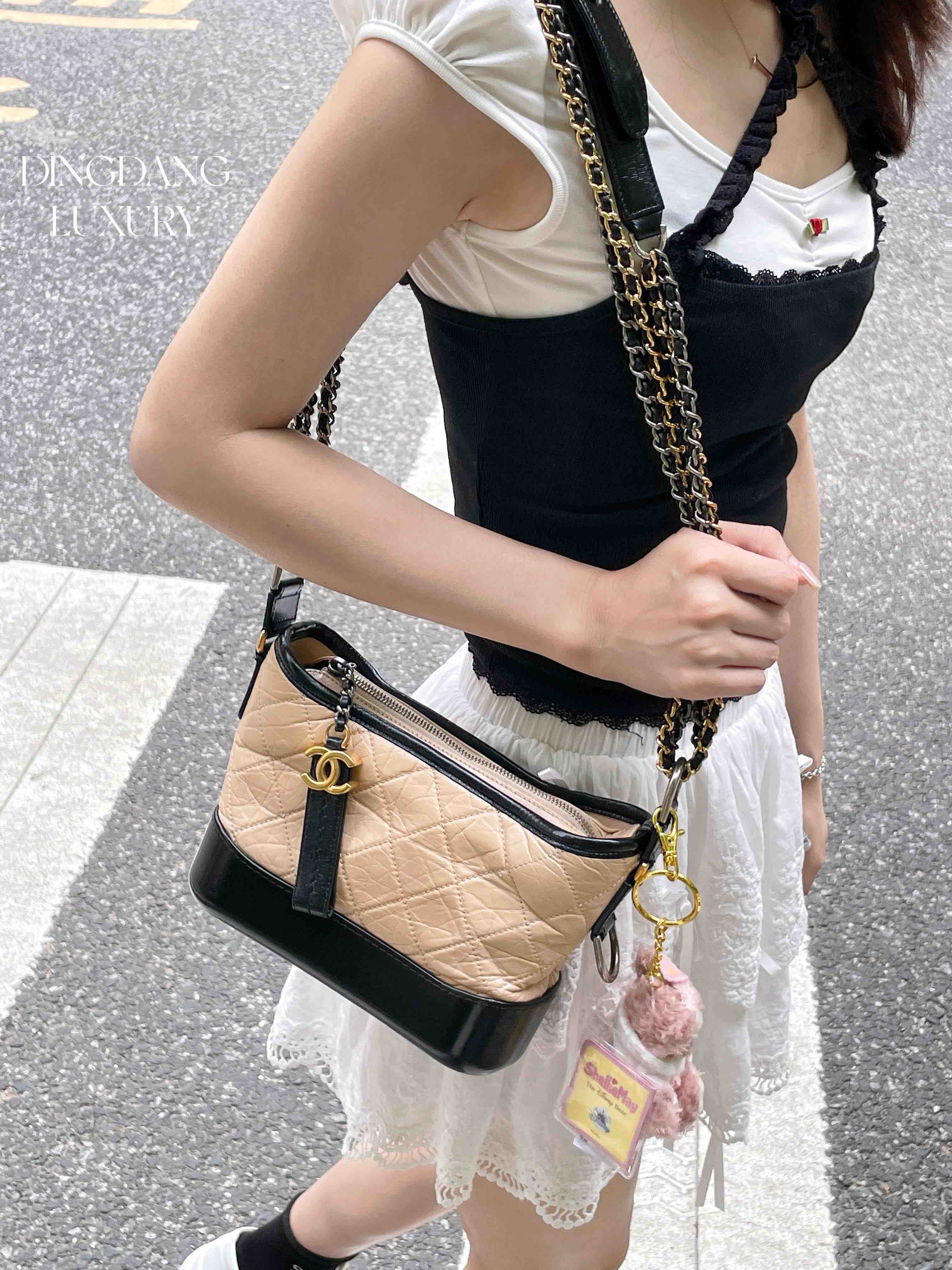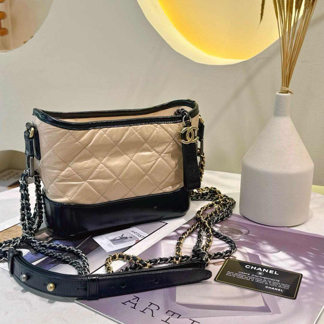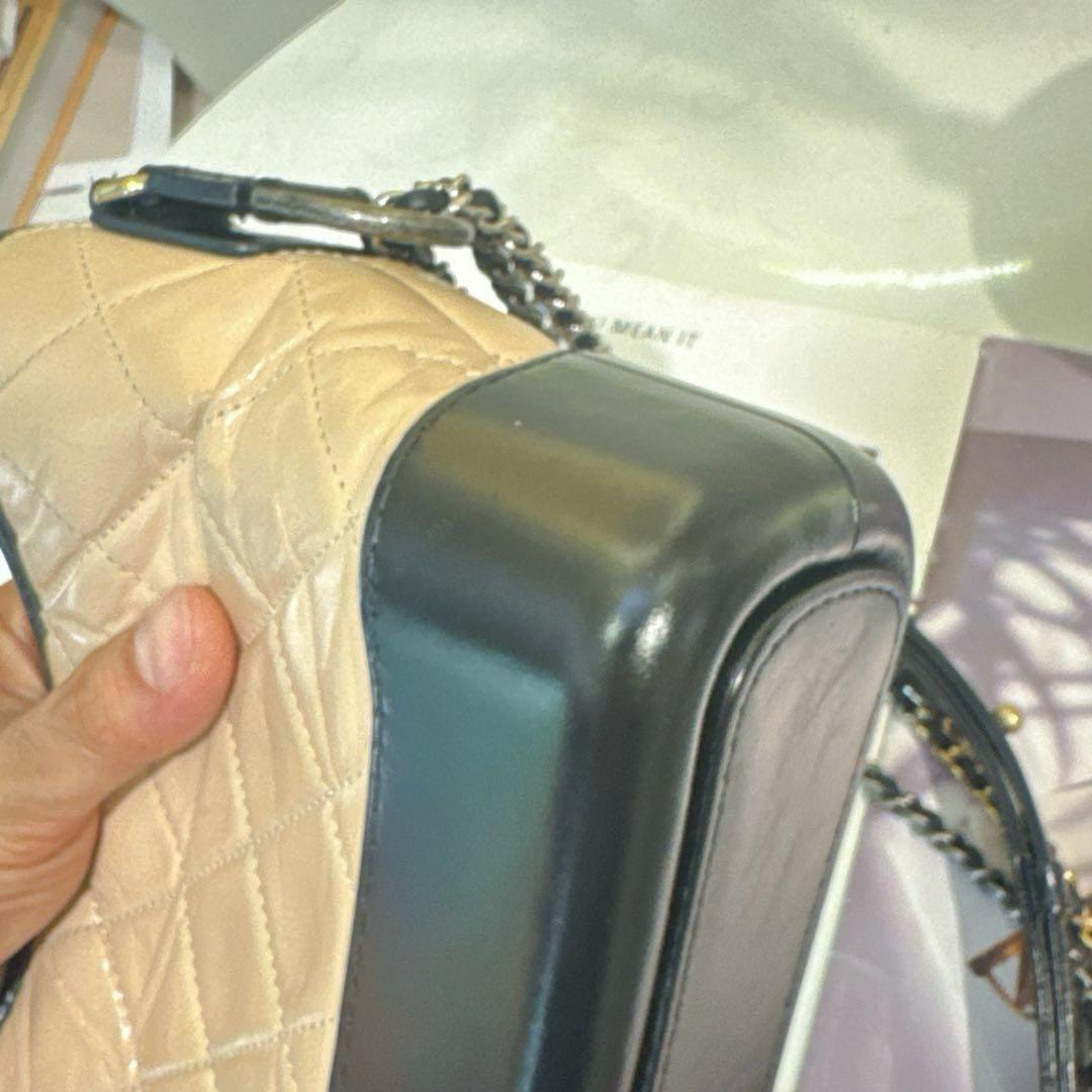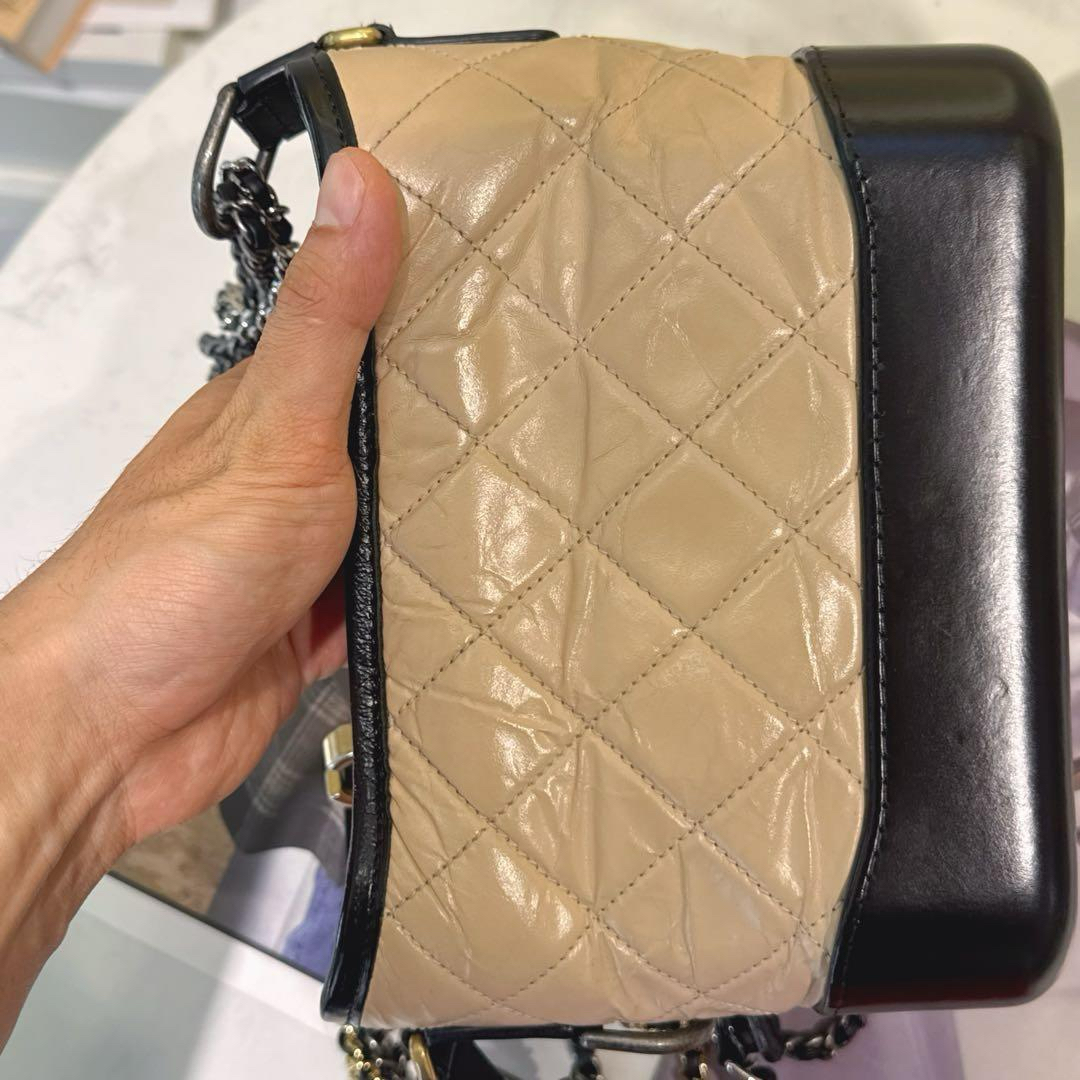 【商品詳情】正品二手 Chanel 小号 奶茶拼色 油蜡牛皮 菱格纹 流浪包🌄 95新 20*14 镭射25开 配件:卡 防尘袋。拉链处拼布有轻微使用脏。包身客户已保养过 现在状态nice